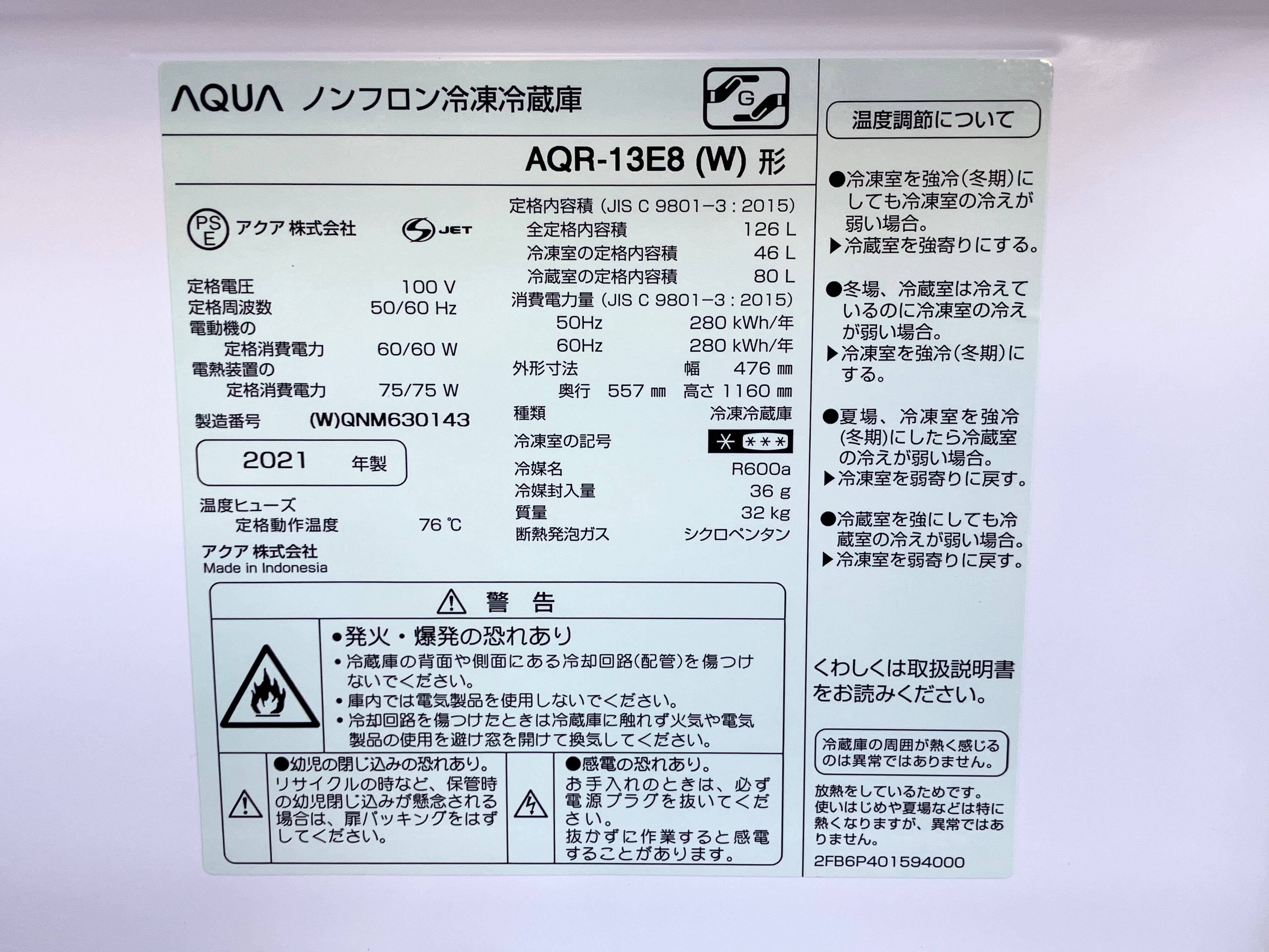 2021年製 AQUA 126L ノンフロン冷凍冷蔵庫