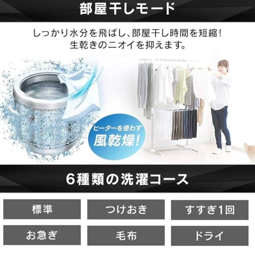部屋干しモード機能付き☆ブラックでスタイリッシュな全自動洗濯機です。