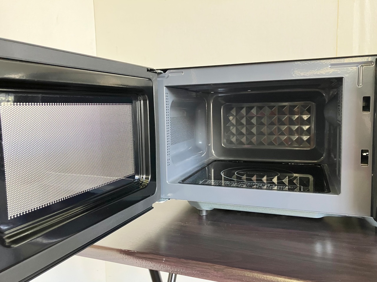 ターンテーブル不要で大きめのお皿もスムーズに出し入れできます。