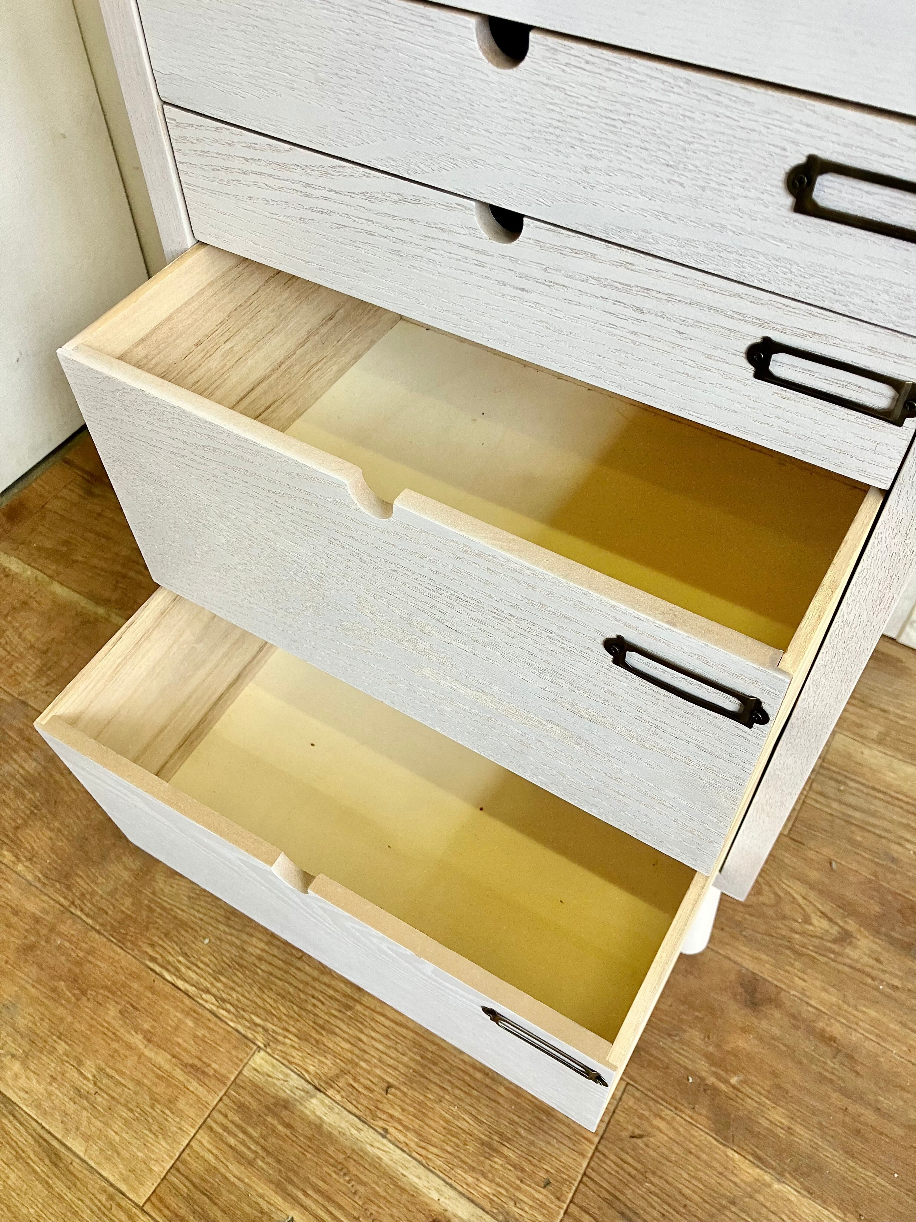 下2段は高さのある引き出しになっていて、書類ややさまざまな小物類の収納が可能です。