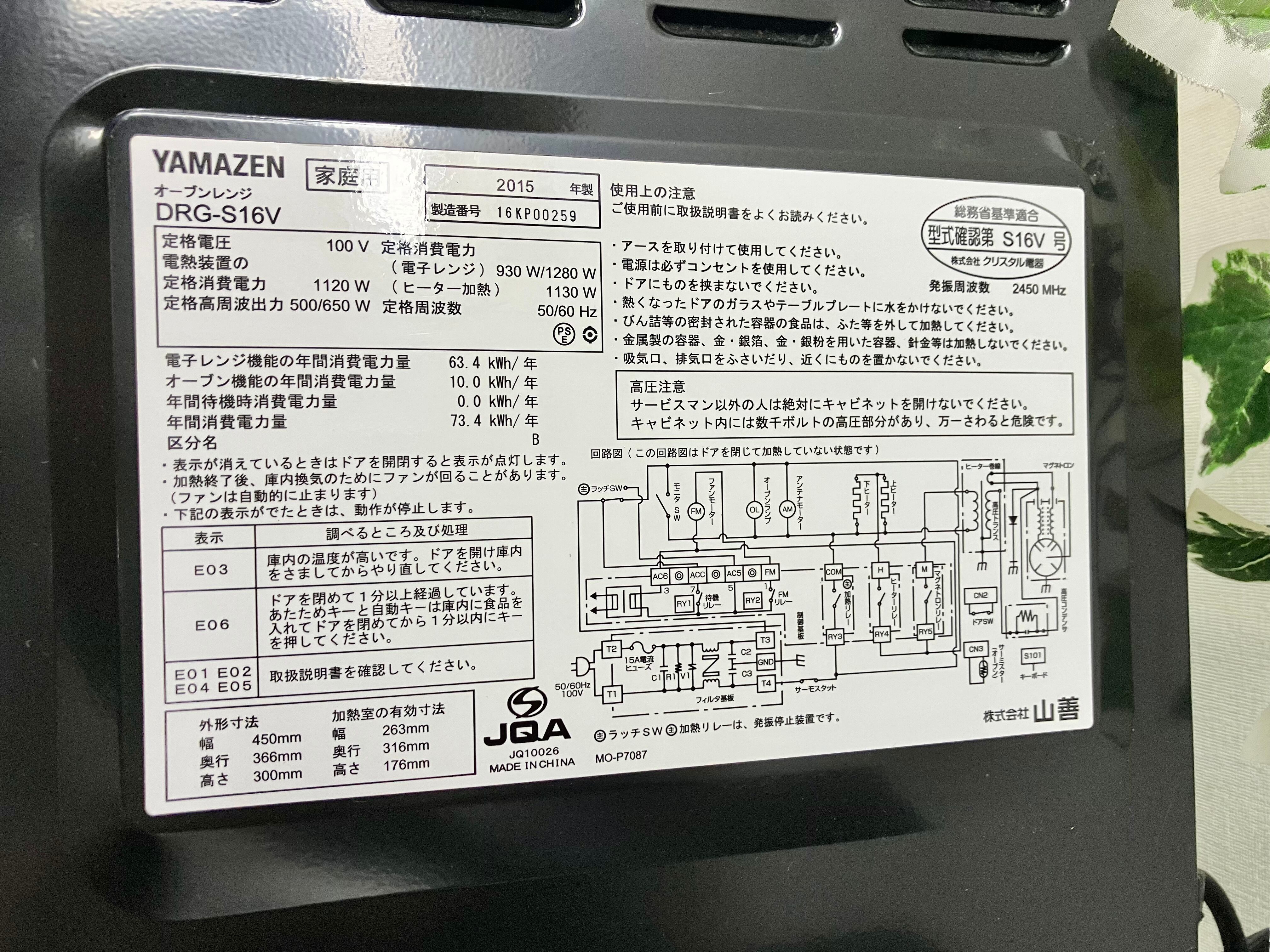 YAMAZEN オーブンレンジ 2015年製 DRG-S16V