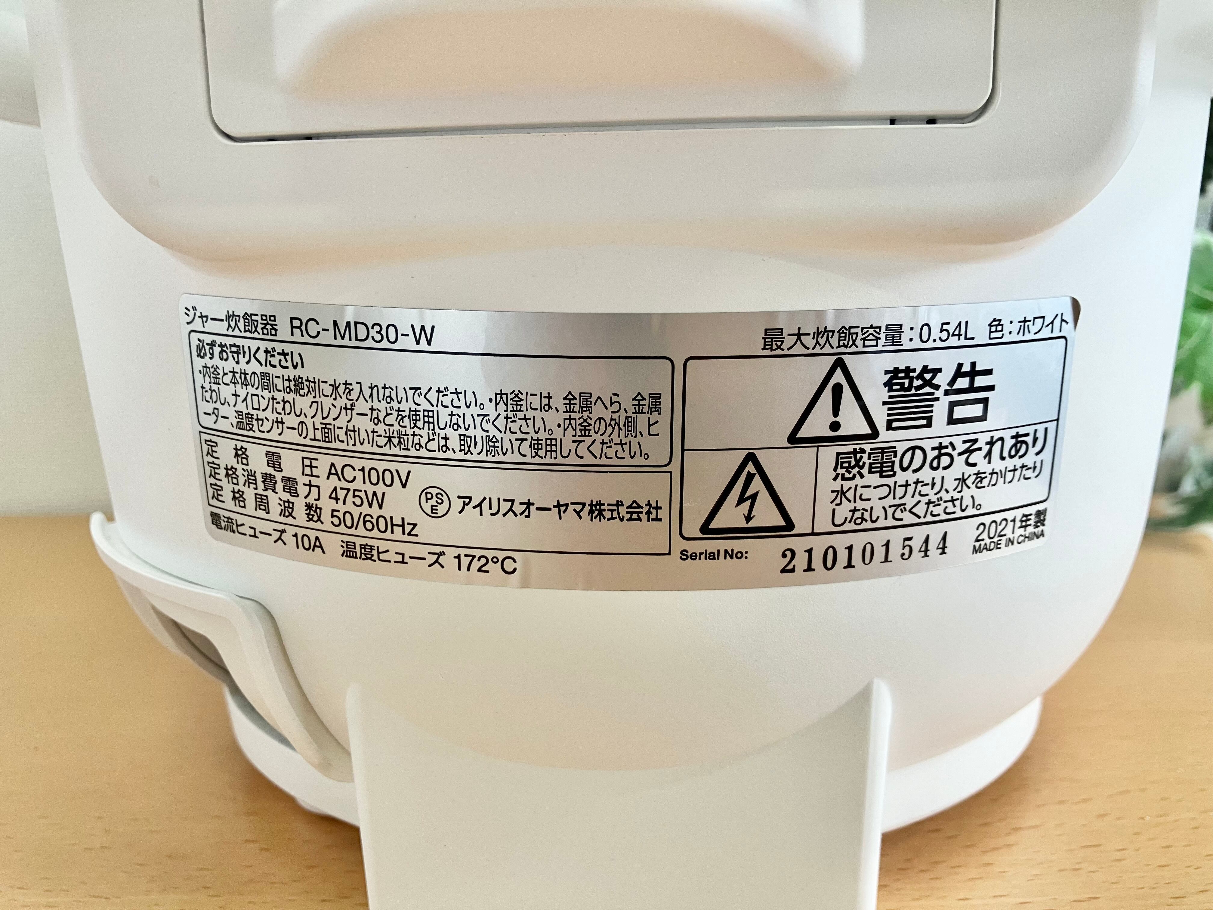 コンパクトながら便利な機能が充実した、アイリスオーヤマ製の3合炊き炊飯ジャーです。