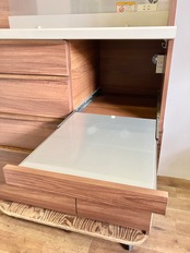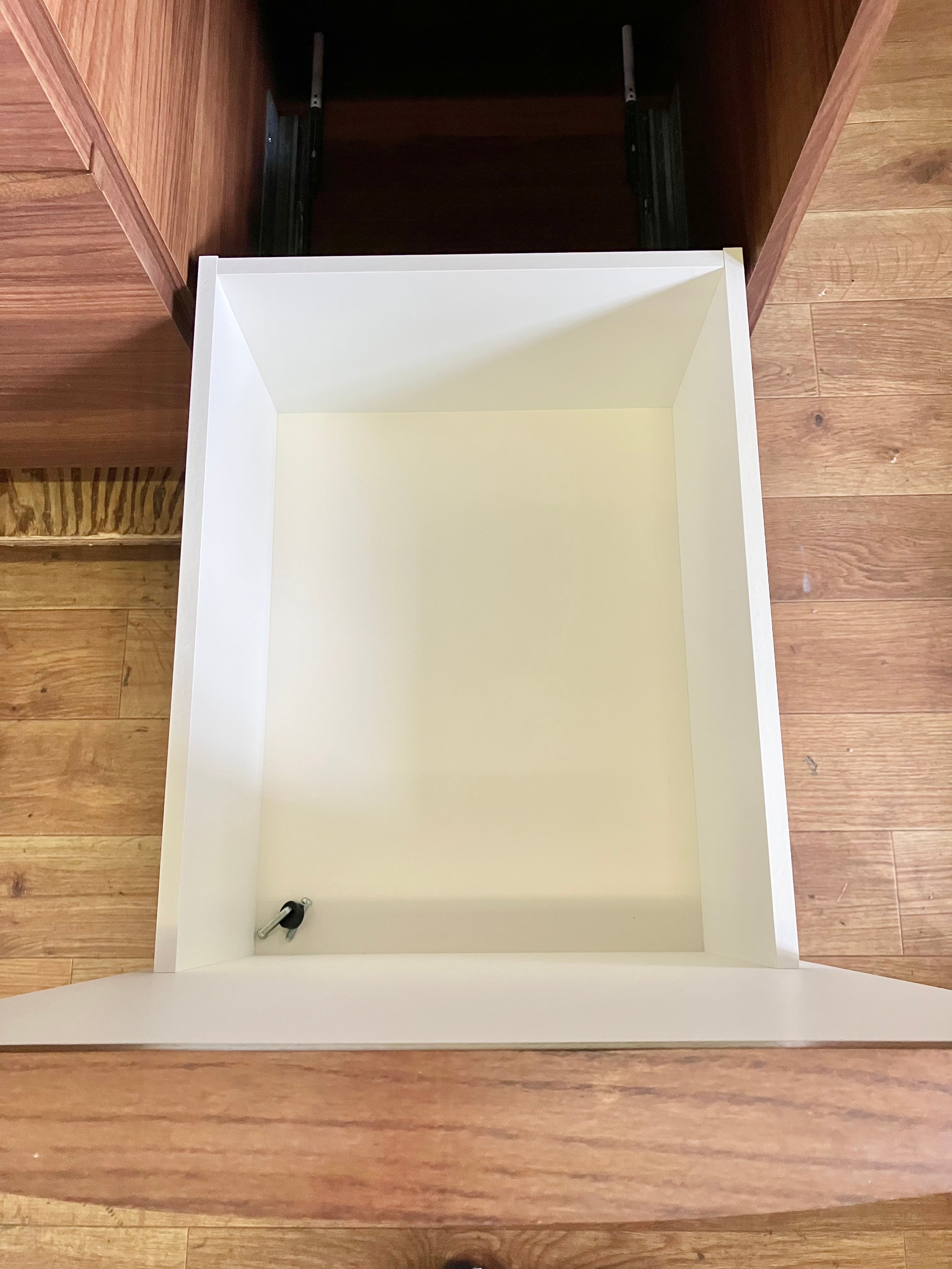 収納力も豊富でスライド式の棚や引き出しがあるのでカトラリーやキッチン小物など収納するのに便利です。