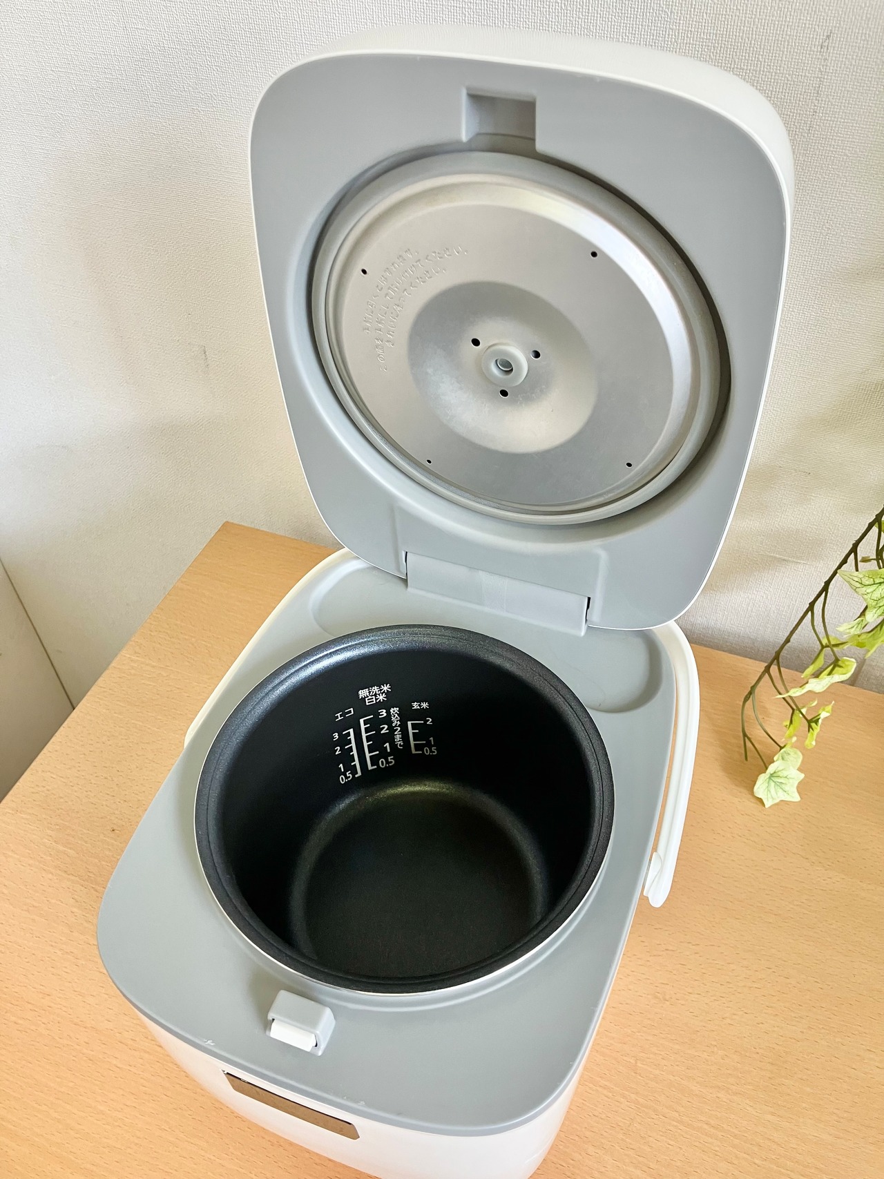 外側に落ちきらないヨゴレのようなものが僅かにございますが、内釜や内蓋は使用感少なめで、大きく目立つようなダメージなどございません。
