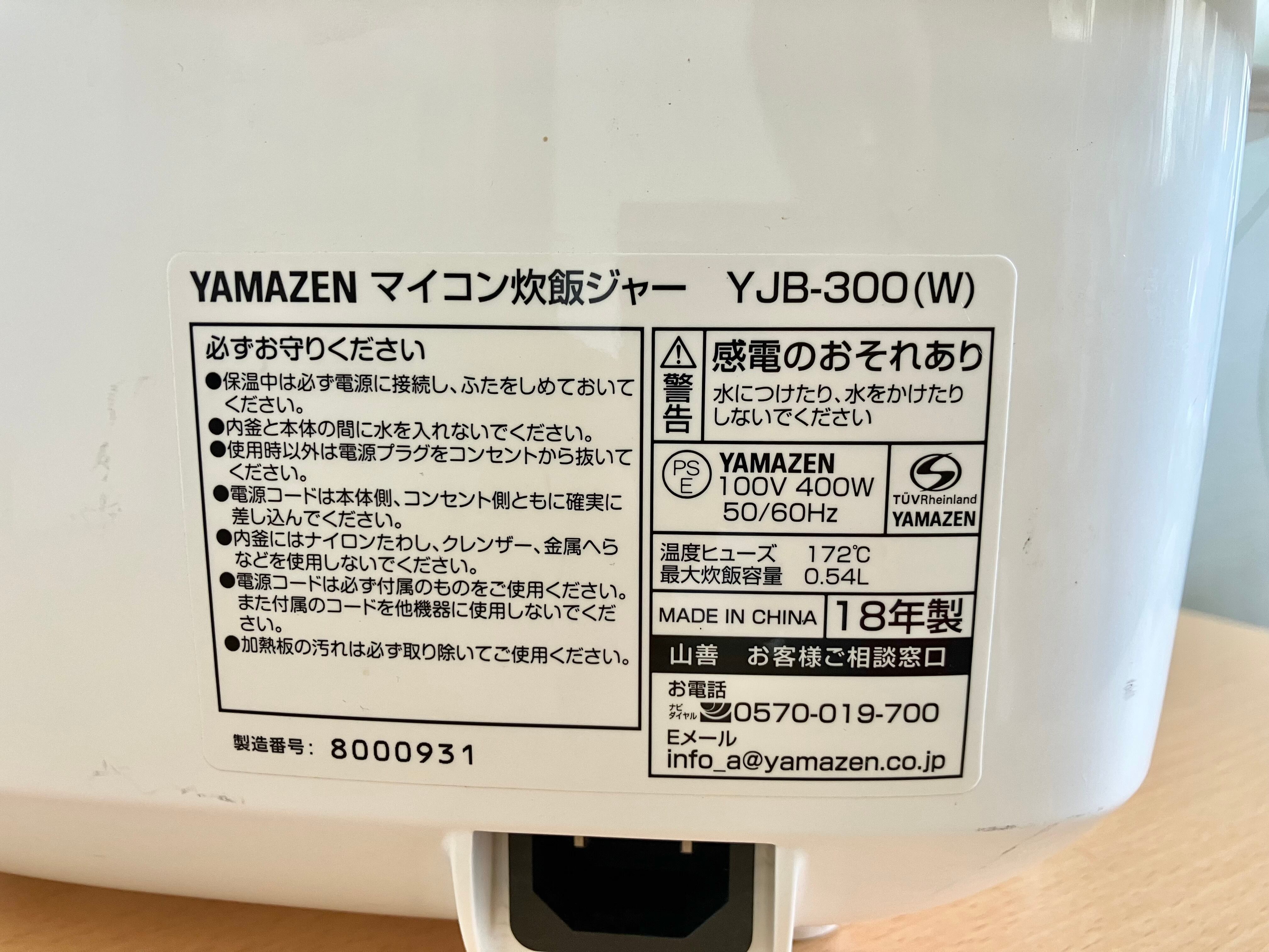 シンプル操作のYAMAZENマイコン炊飯器です。
