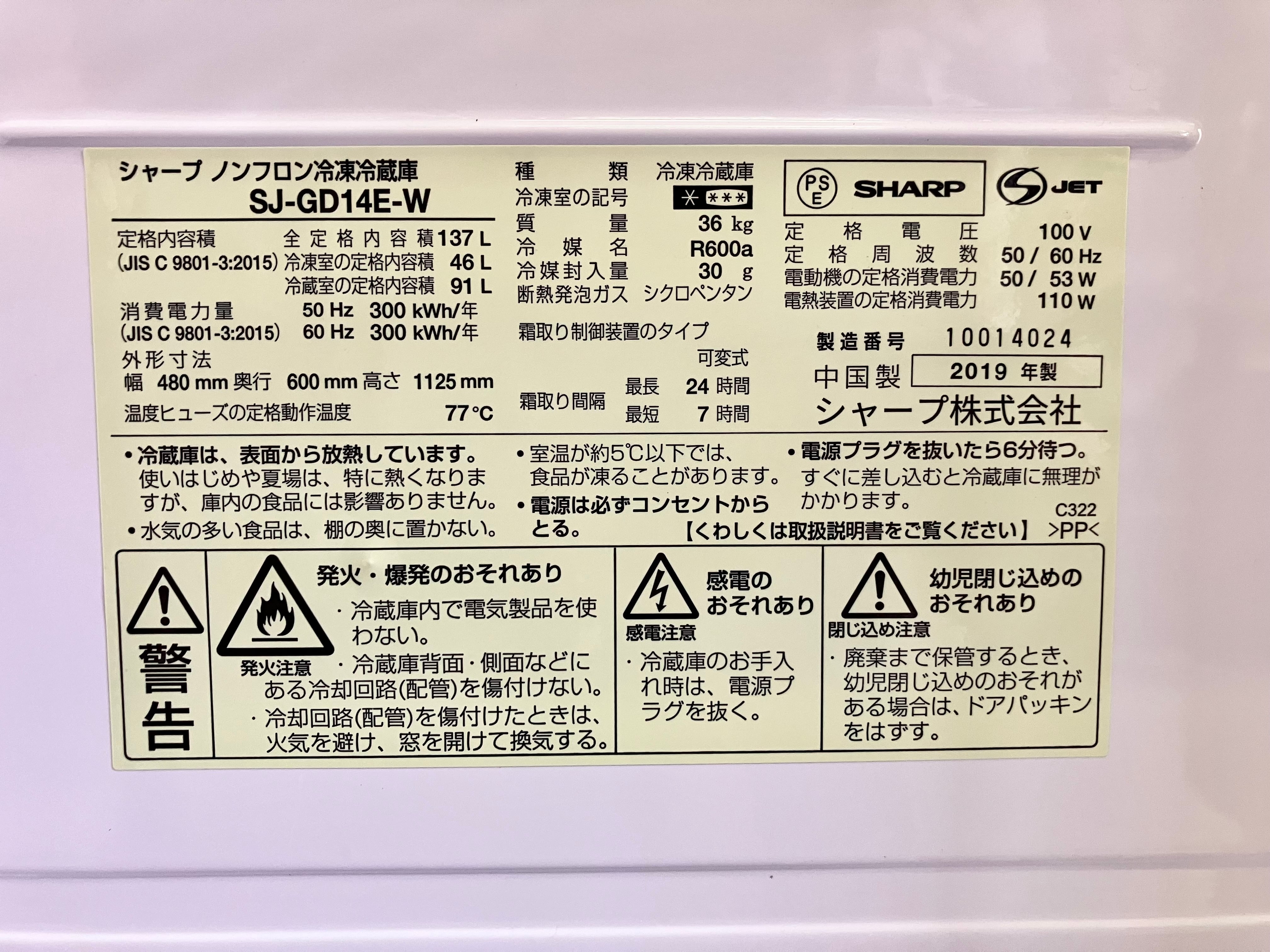 SHARP 137L ノンフロン冷凍冷蔵庫 2019年製