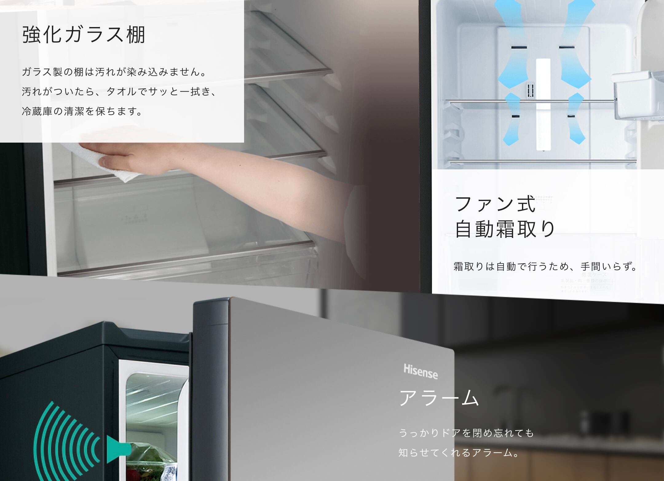 お掃除しやすい強化ガラス棚、うっかりドアを閉め忘れても知らせてくれるアラーム機能などが魅力的です。