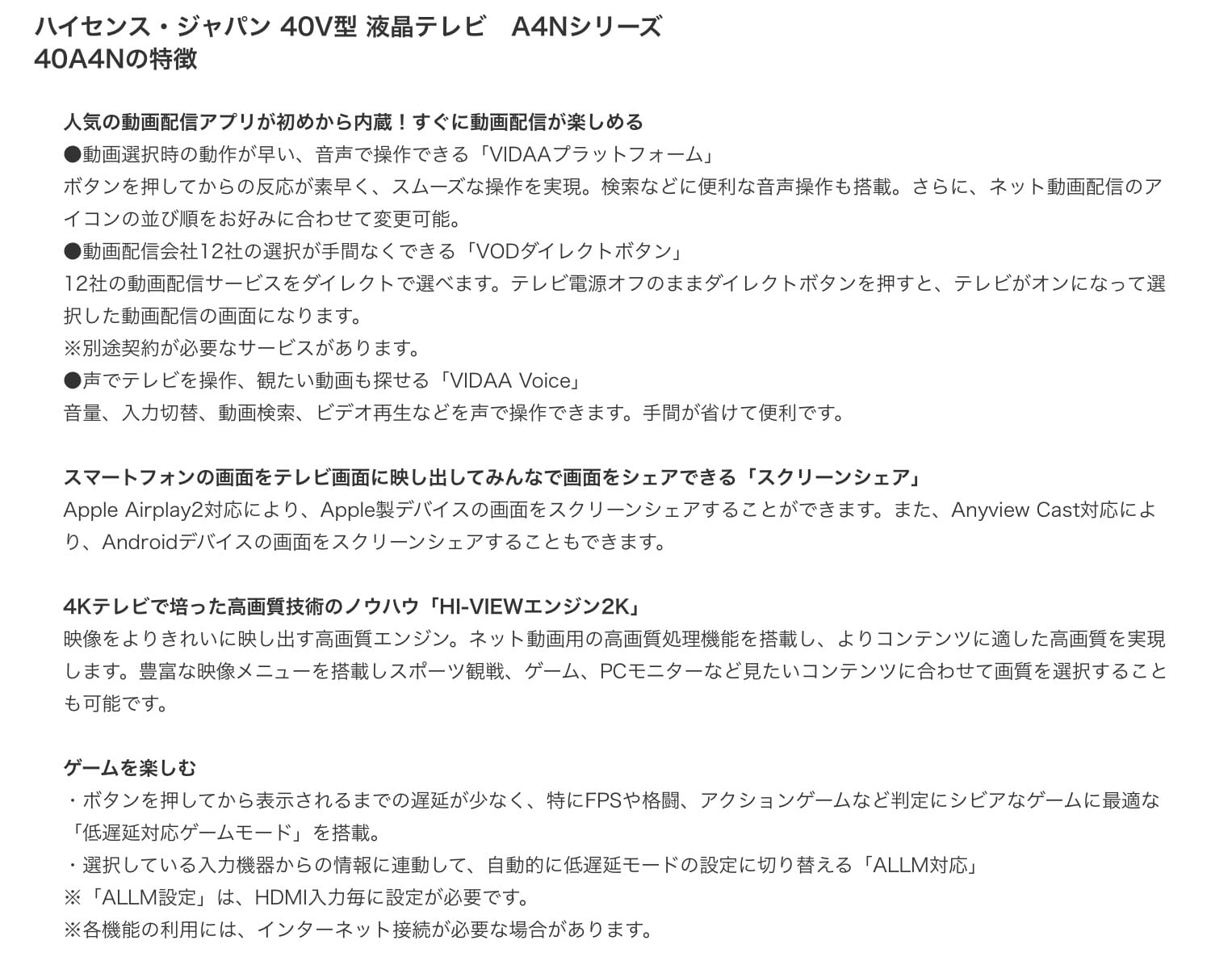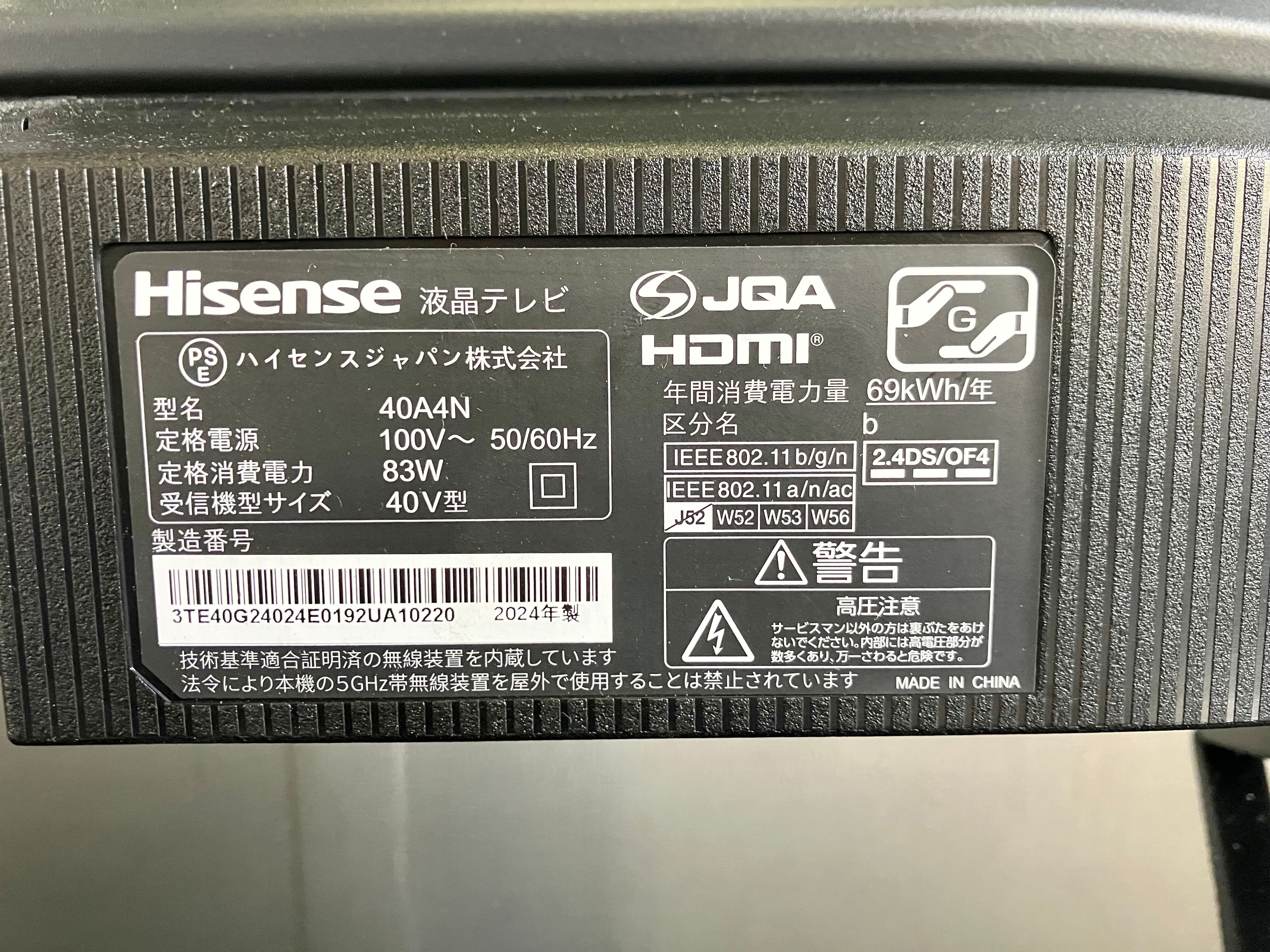 2024年製 40型 Hisense スマート液晶テレビ