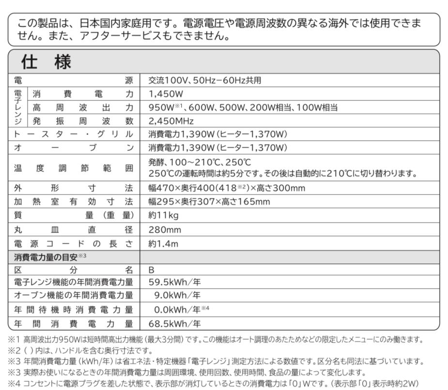 ✔︎ 最大レンジ出力950W で加熱パワー十分。