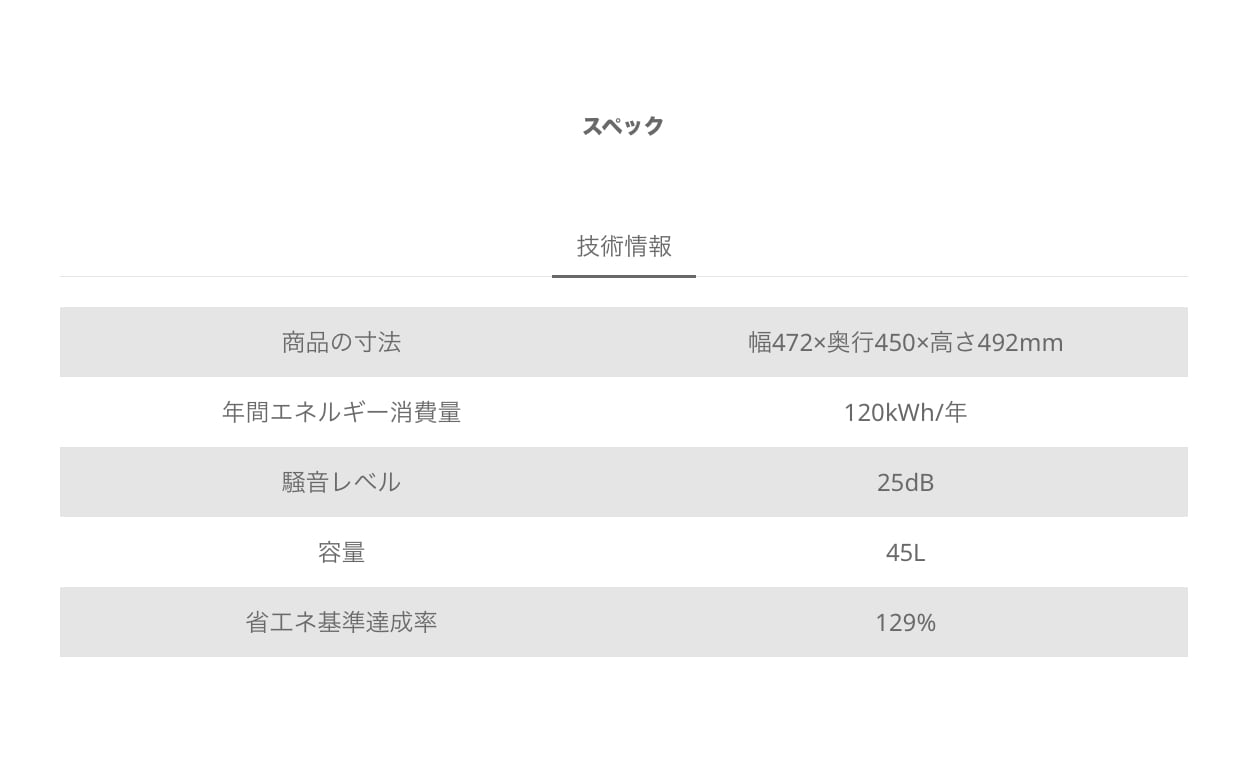 また、年間消費電力量約120Wh/年、省エネ基準達成率は129%、お財布にも環境にもやさしいです◎