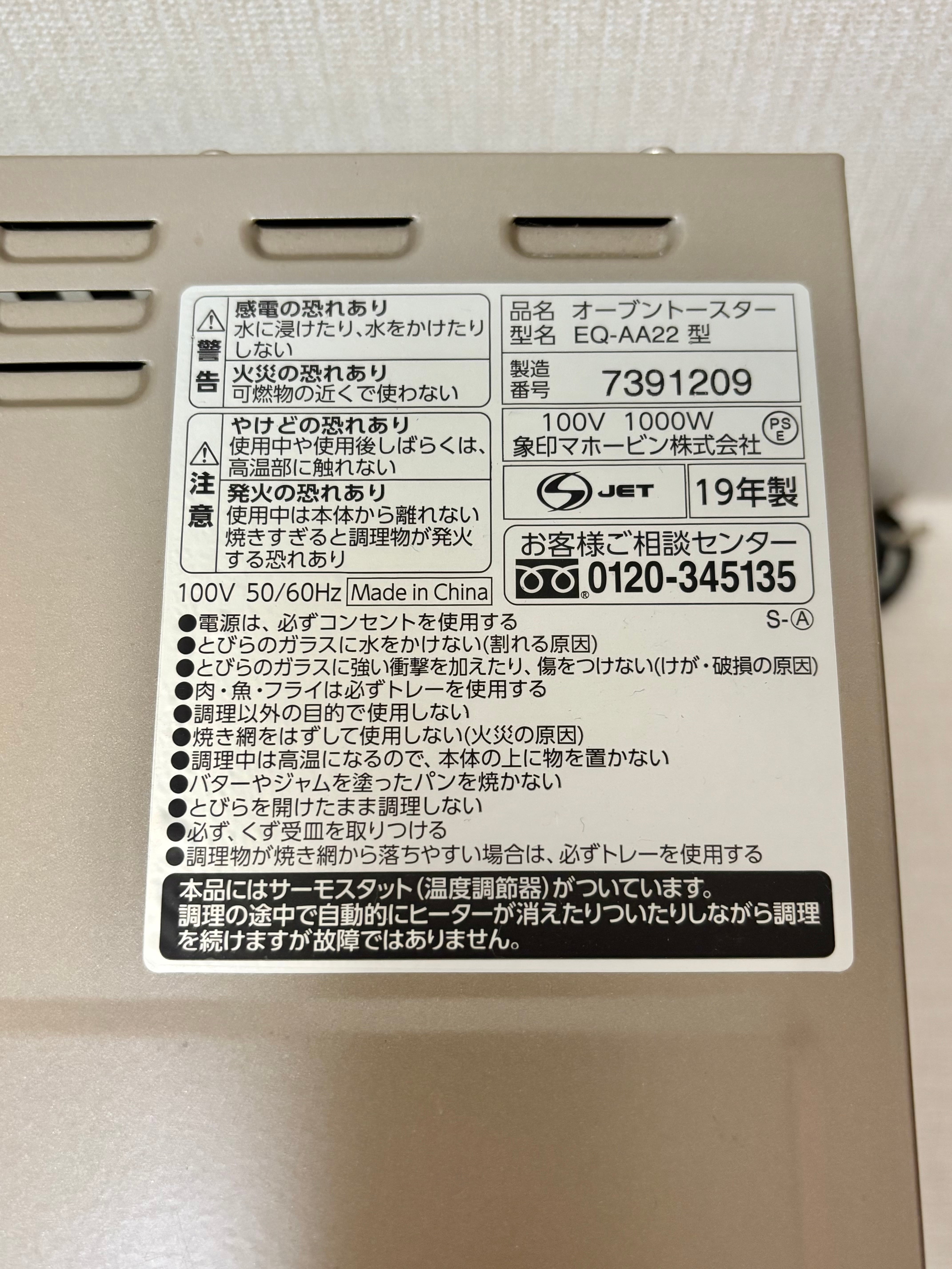 パン2枚が焼ける庫内広々のオーブントースターです。