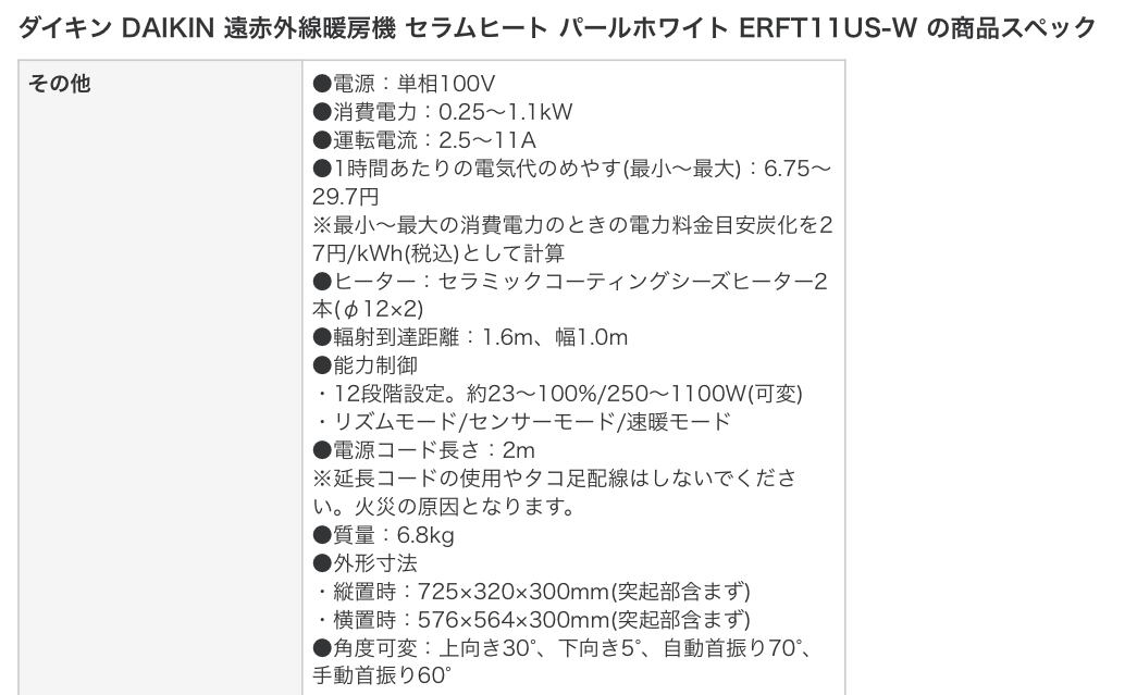 • 角度調節・向きの自由度が高い設計:縦置き・横置き対応、上向き30°/下向き5°の角度、左右自動首振り70°/手動60°など。状況や設置場所に応じて暖める方向を変えられます。