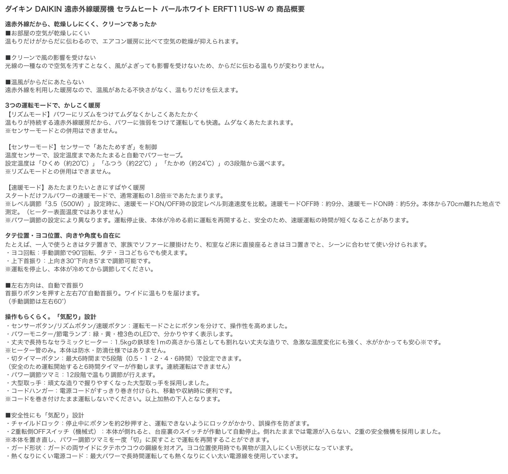 • 温度モード/センサーモード:室温が設定温度に近づくと自動でパワーをセーブ。暖めすぎを防げます。