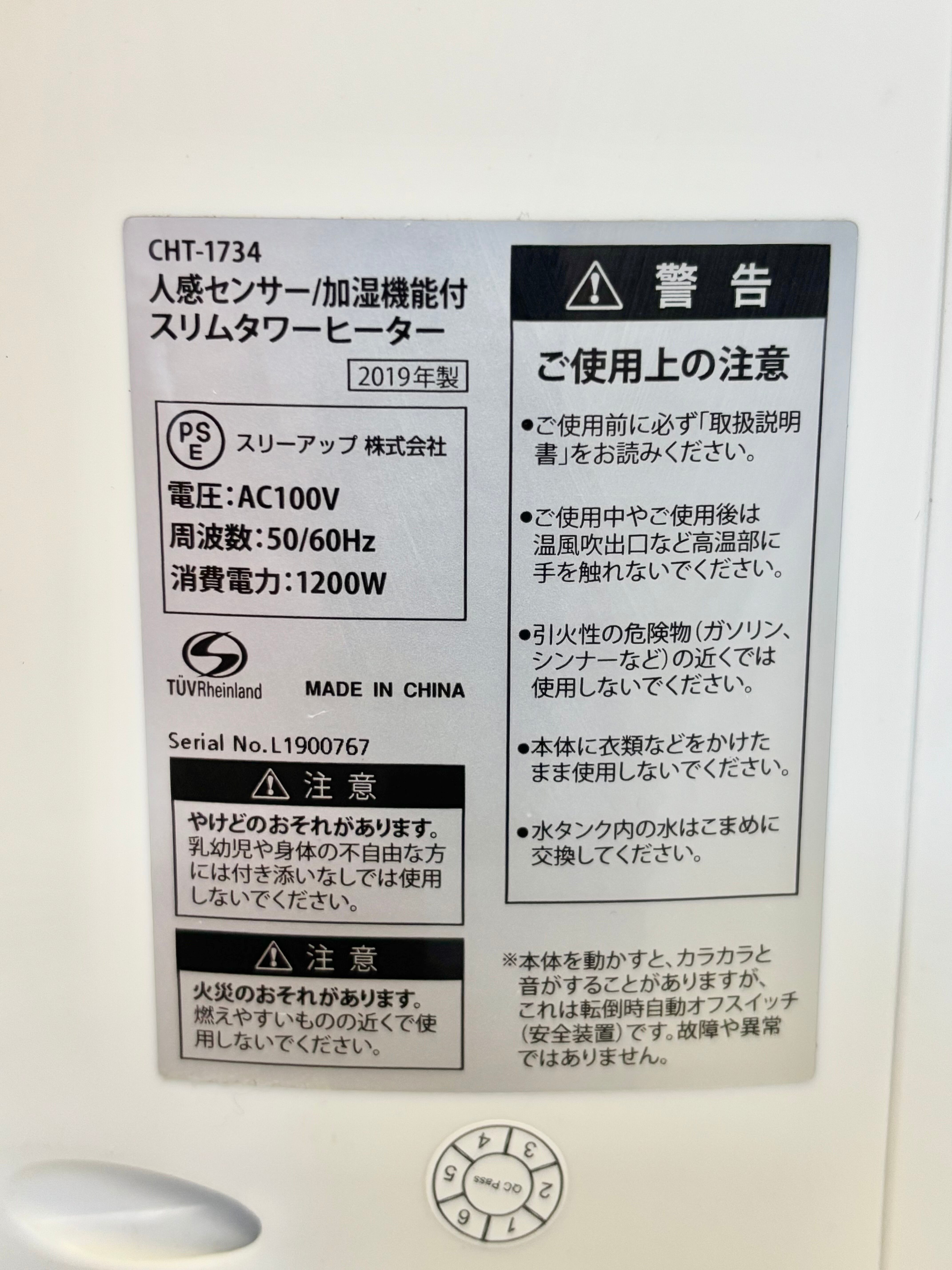 人感センサー・超音波加湿器機能を搭載した暖めながら加湿もできる多機能セラミックヒーターです☆
