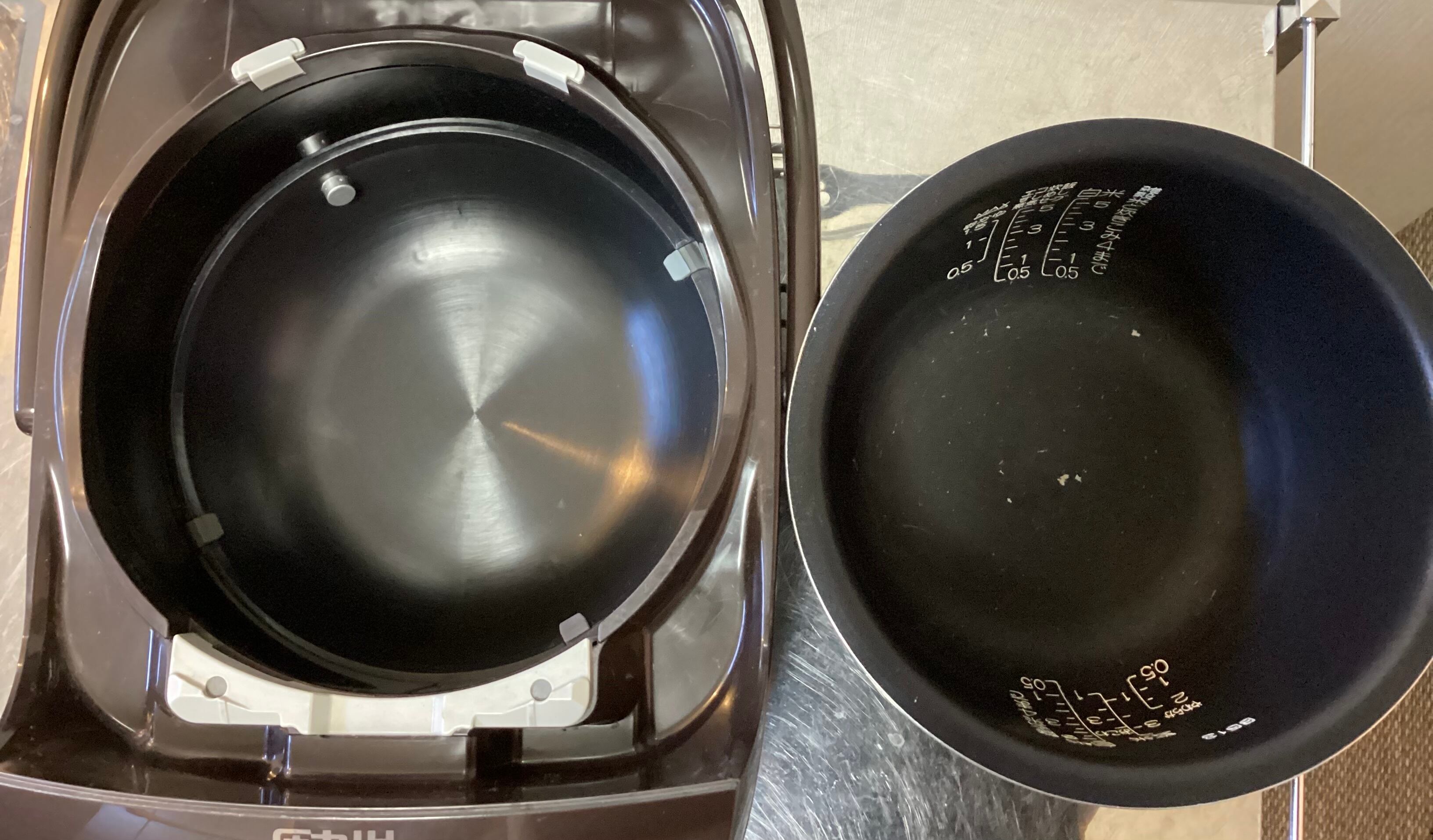 内釜には剥がれなどの使用感がございますが、動画は問題なくお使いいただけます。