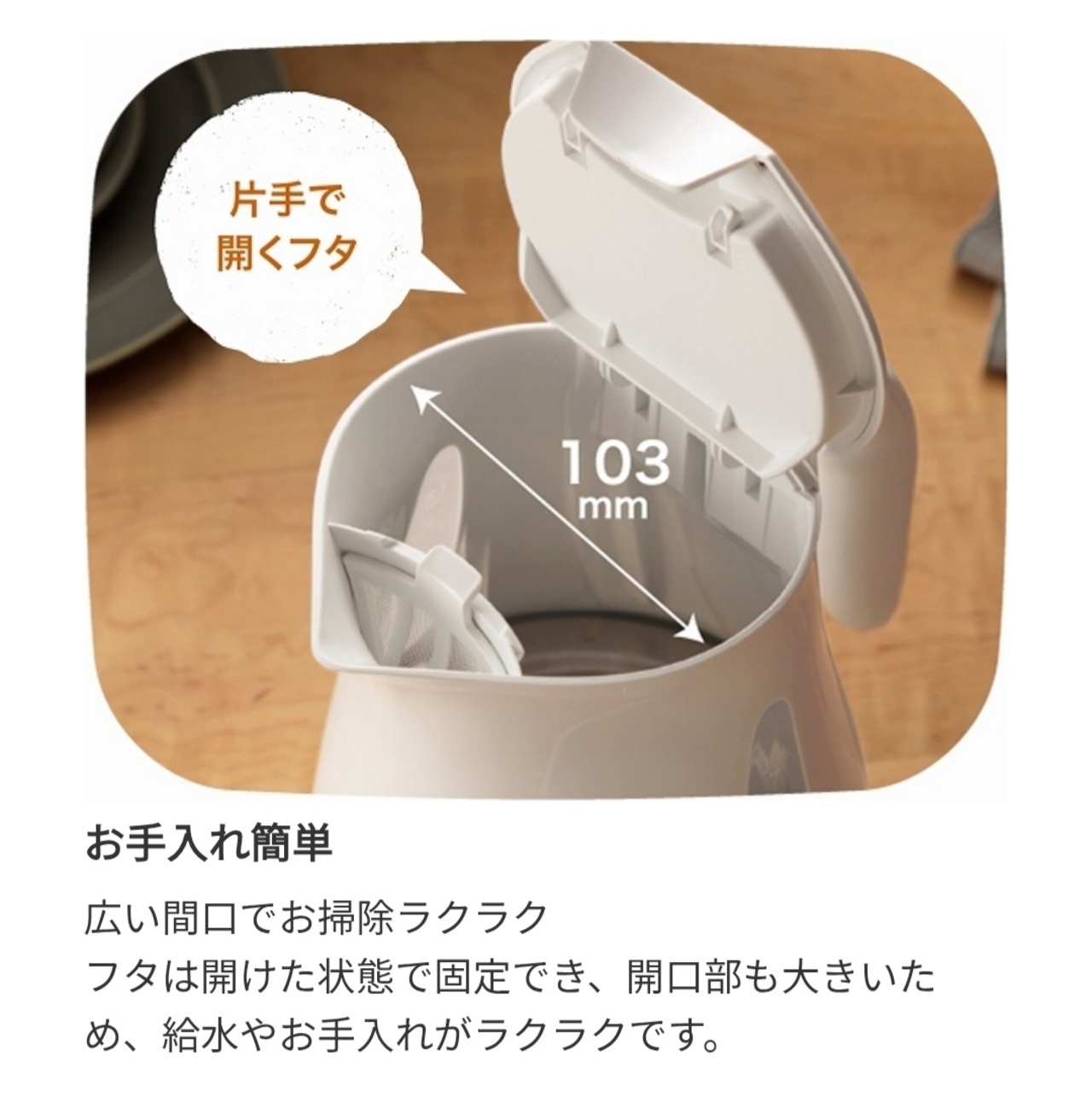 湯量をコントロールしやすいスリムな注ぎ口や、お手入れ簡単広い間口でお掃除もラクラク使い勝手良し◎