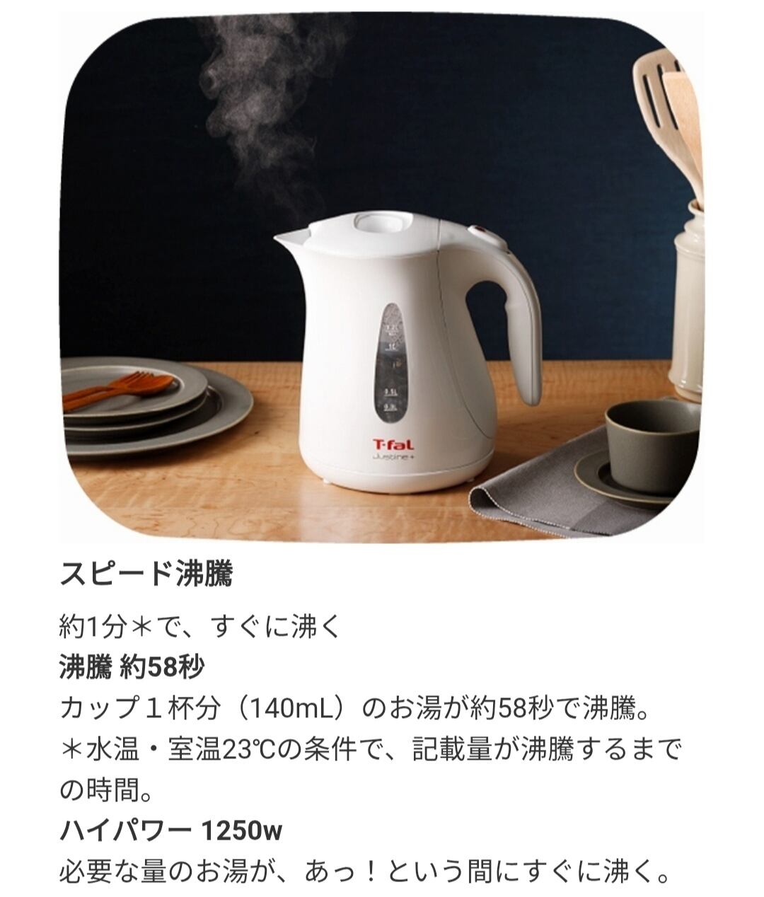 1.2Lの大容量で、あっ!という間にすぐに沸くT-falの電気ケトルです。