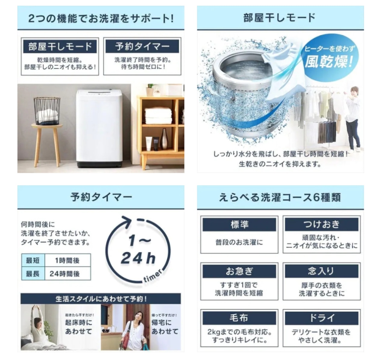 ■ライフスタイルに合わせた使い方ができる、1~24時間の予約タイマー機能付です。