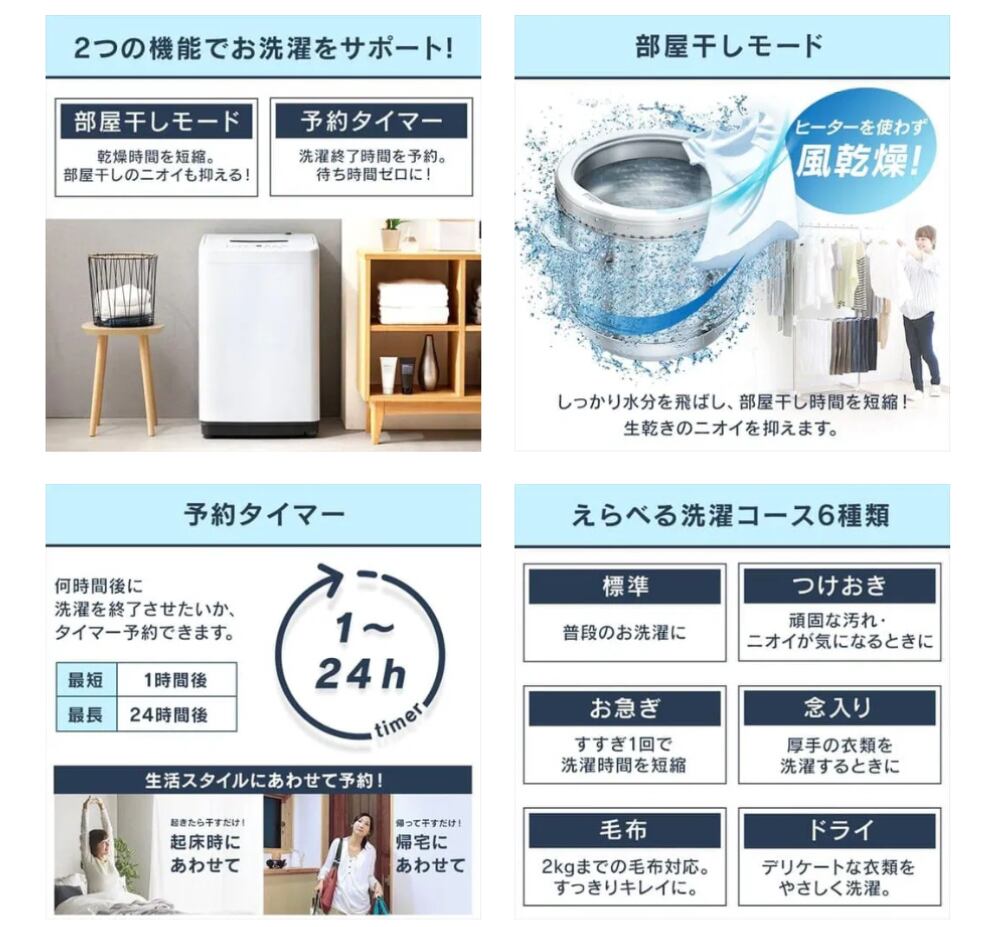 一人暮らしや、毎日お洗濯をする方におすすめのコンパクトサイズの洗濯機です。