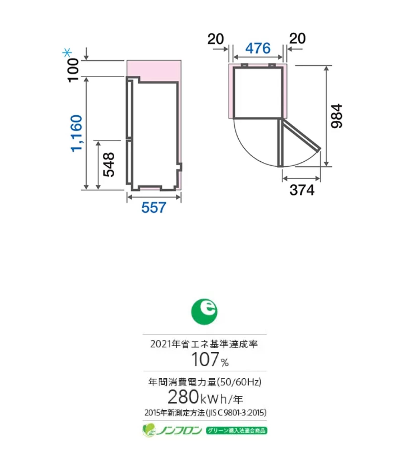 上が冷蔵室、下が冷凍室。