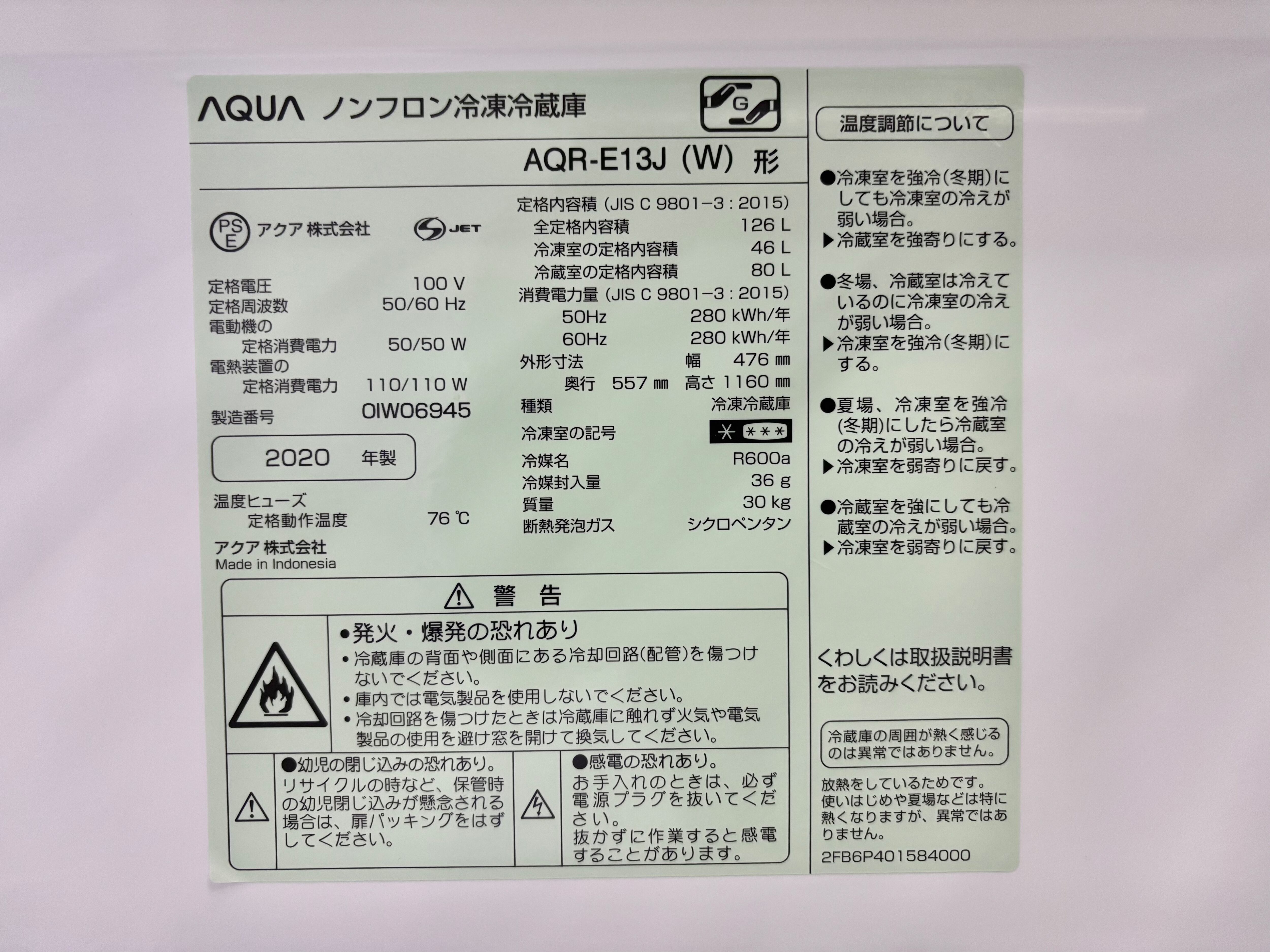 品番 AQR-E13J