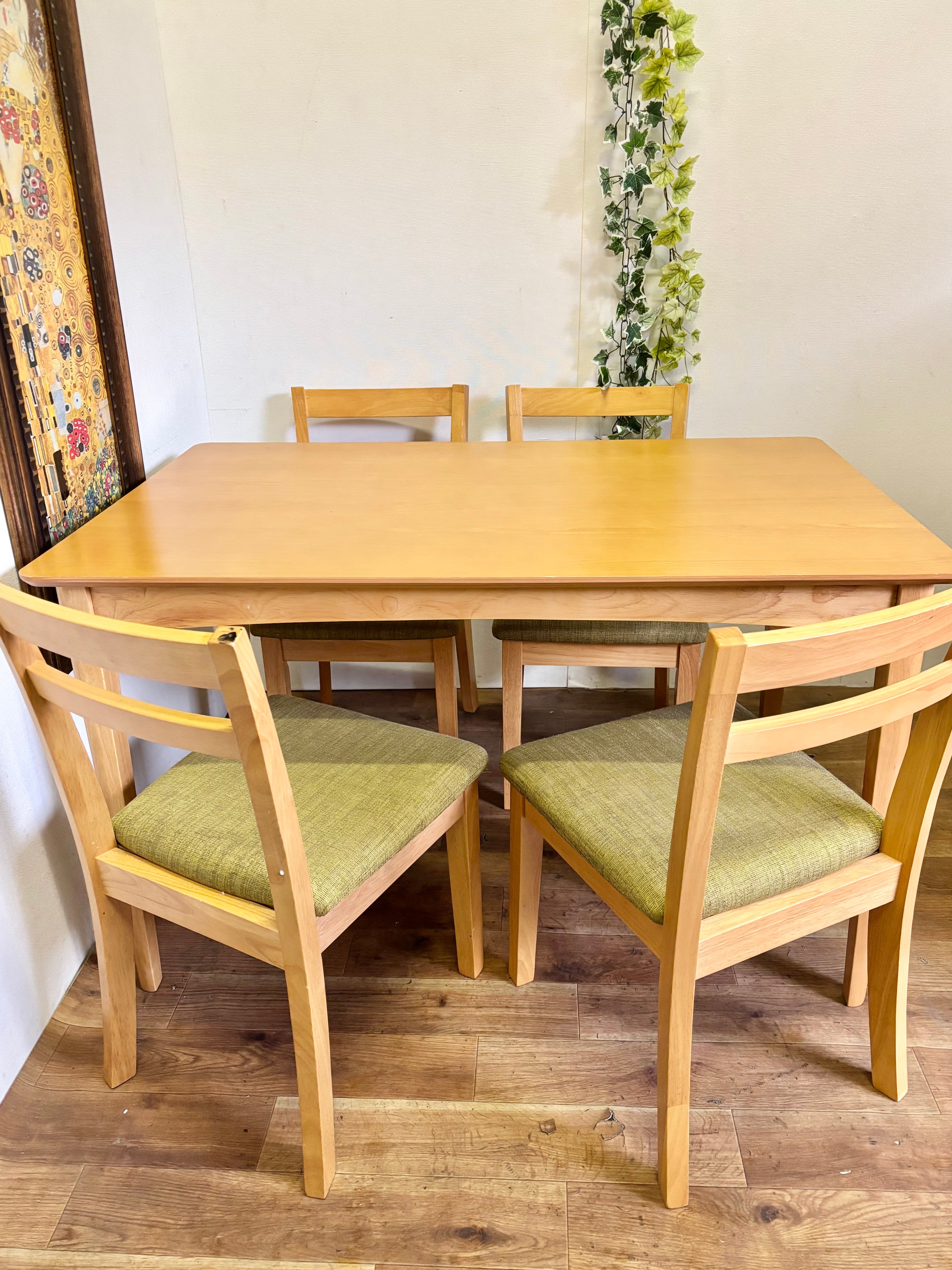 天板には小キズなどの使用感、チェアのフレームにも落ちきらないヨゴレなどの使用感がございますが座面の布には破れやほつれなどは見当たりません。