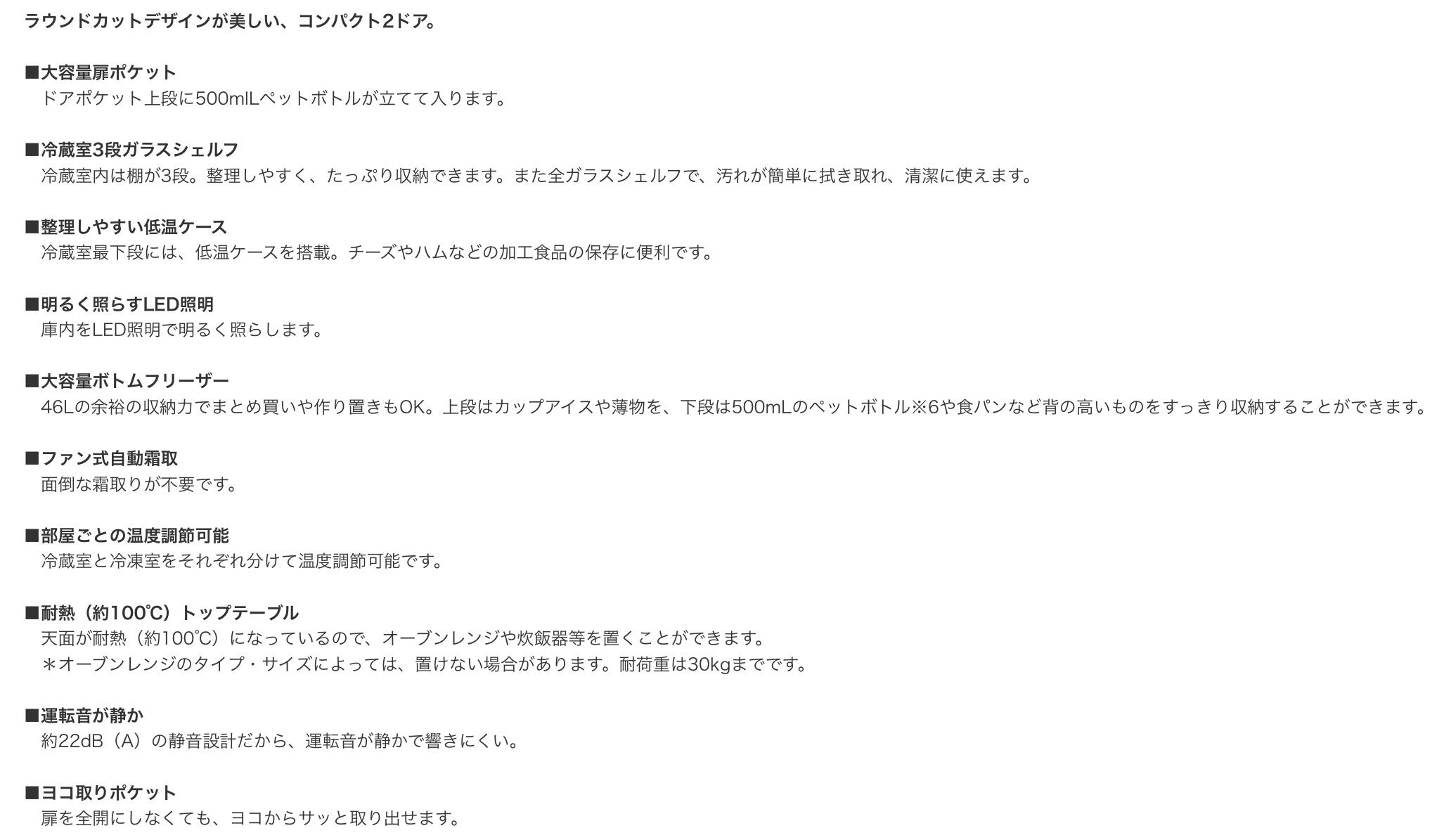 ラウンドカットデザインのスタイリッシュな冷蔵庫です。