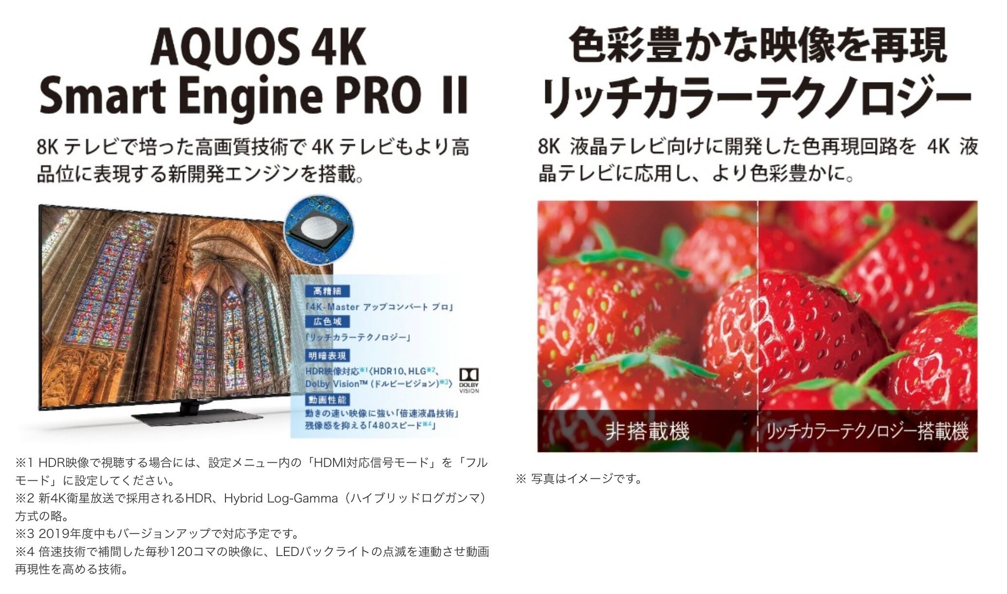 ■新4K衛星放送ダブルチューナーと新エンジン「AQUOS 4K Smart Engine PRO II」搭載