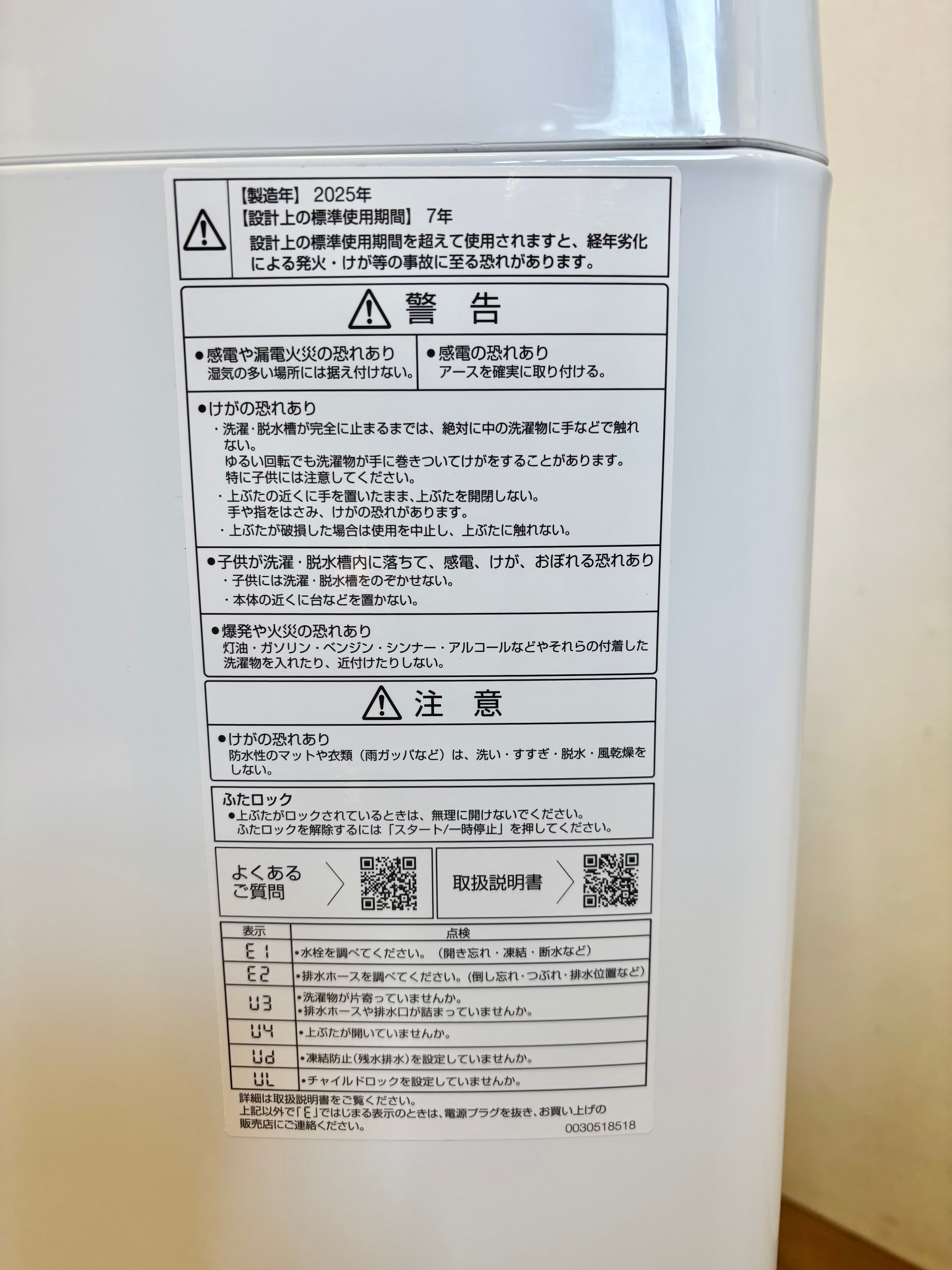 2025年製☆コンパクト設計でひとり暮らしに最適な洗濯機です♪
