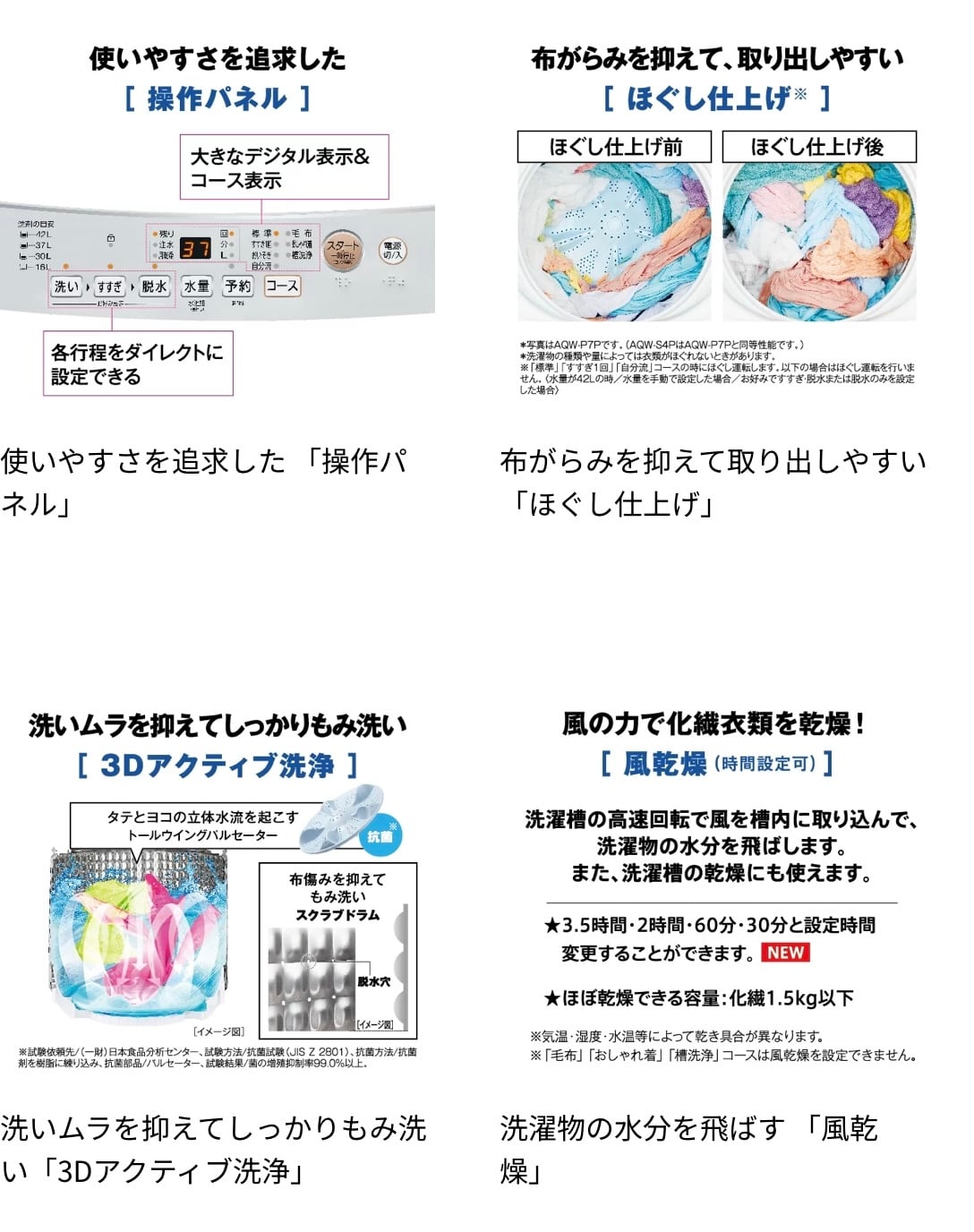 脱水時に吹き出される水によって洗濯槽の裏側に付着している洗剤カス等を洗い流すことにより、黒カビを抑えます。