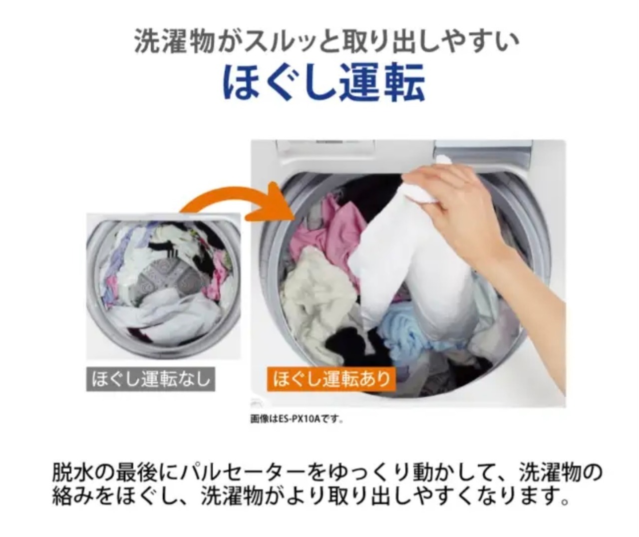 脱水後の絡み解消、洗濯物が取り出し易い。