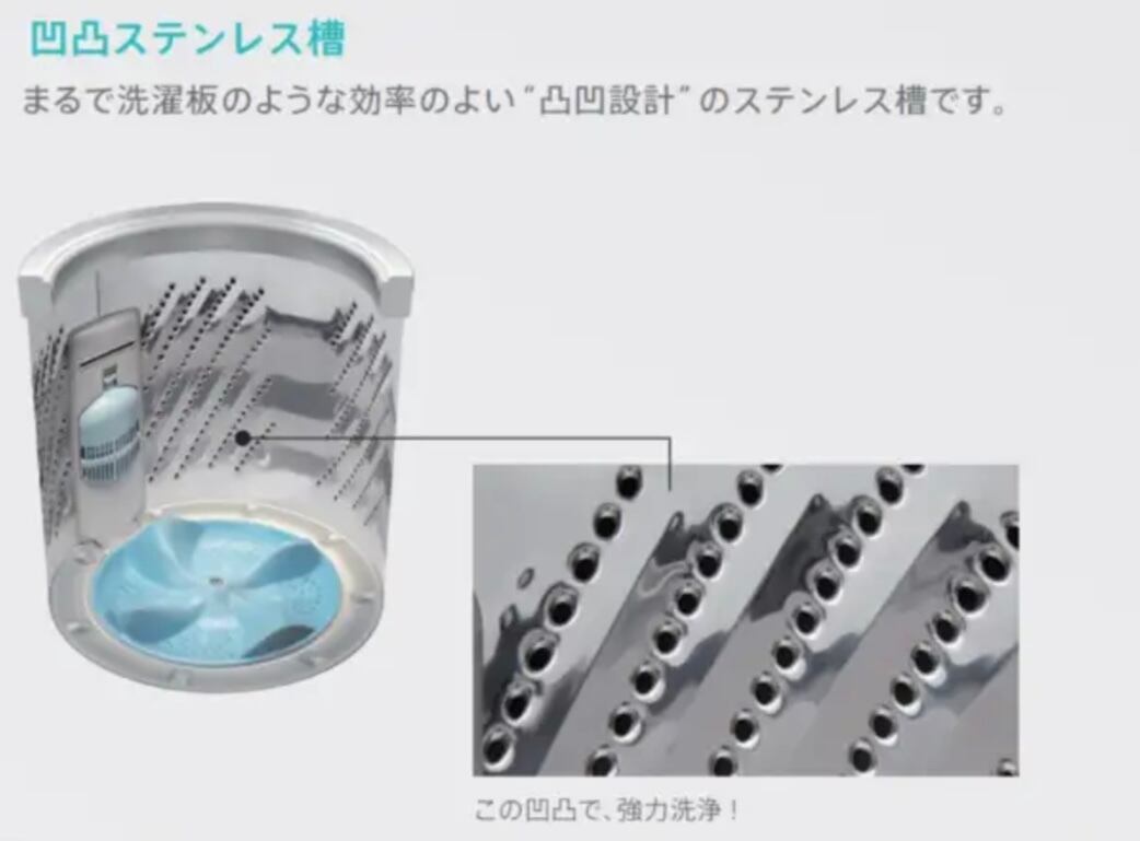 まるで洗濯板のような効率のよい「凸凹設計」のステンレス槽です。