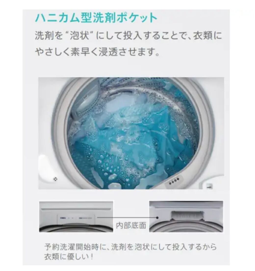 洗剤を「泡状」にして投入することで、衣類にやさしく素早く浸透させます。