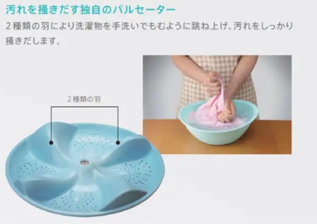 2種類の羽根により洗濯物を手洗いでもむように跳ね上げ、汚れをしっかり掻きだします。