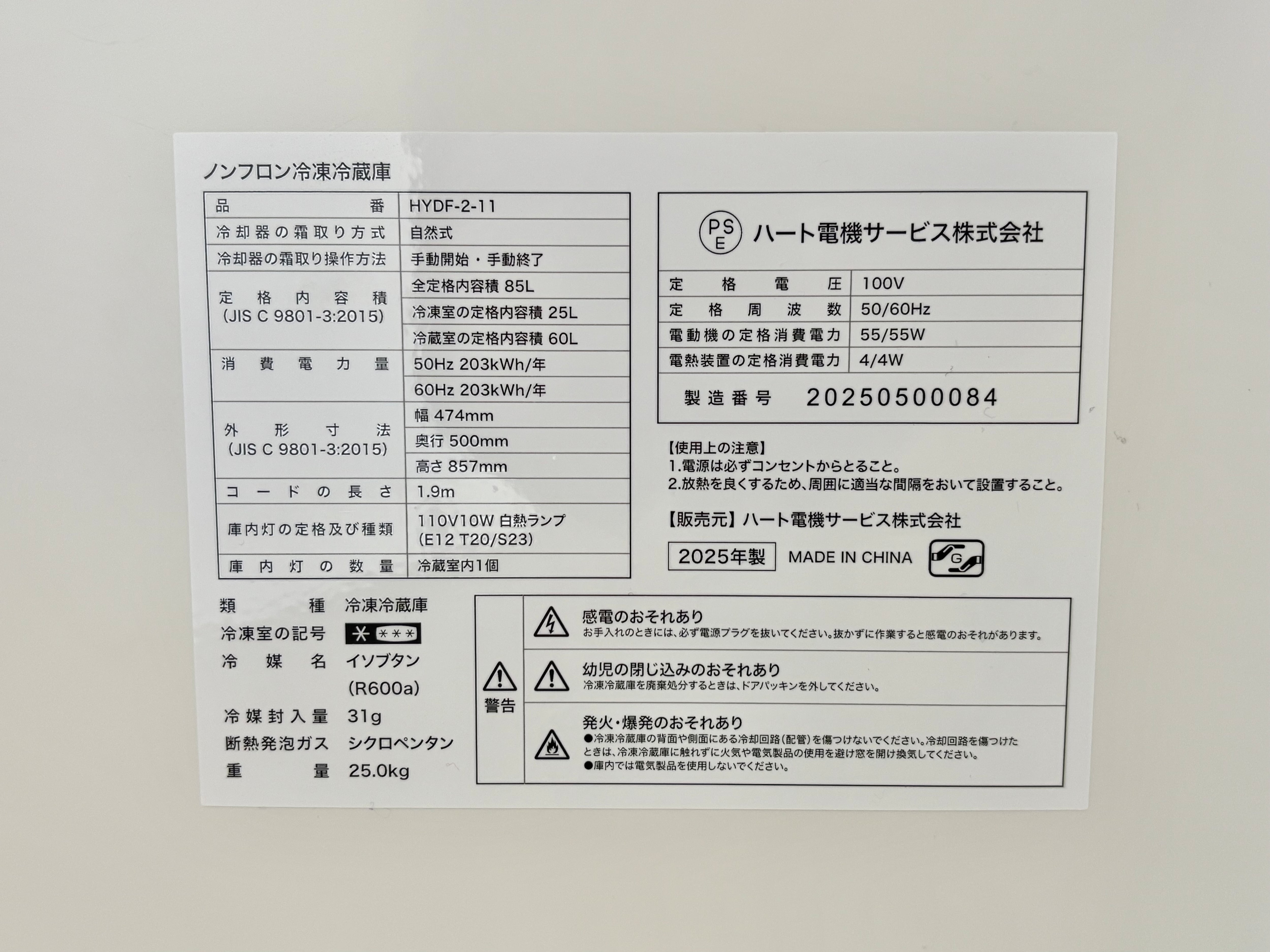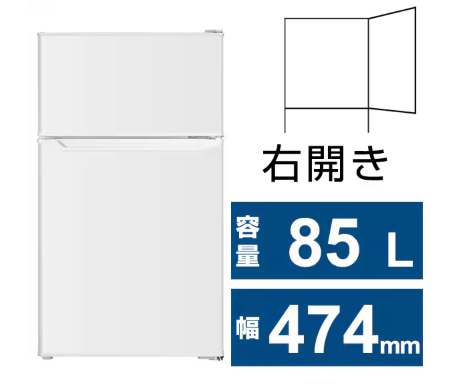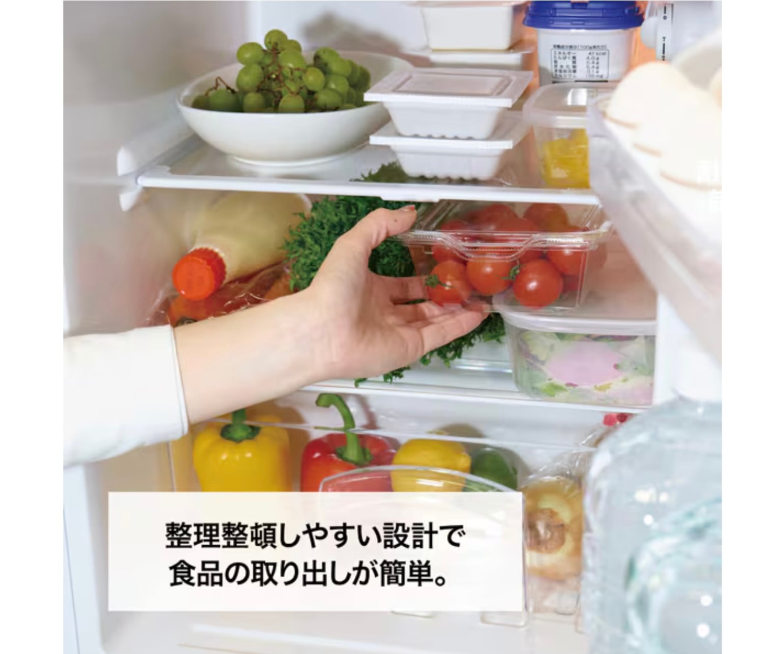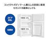 冷凍室25L、冷蔵室60Lと大容量で思った以上にたっぷり収納ができます。冷蔵室のドアポケットは2Lペットボトルが3本収納。