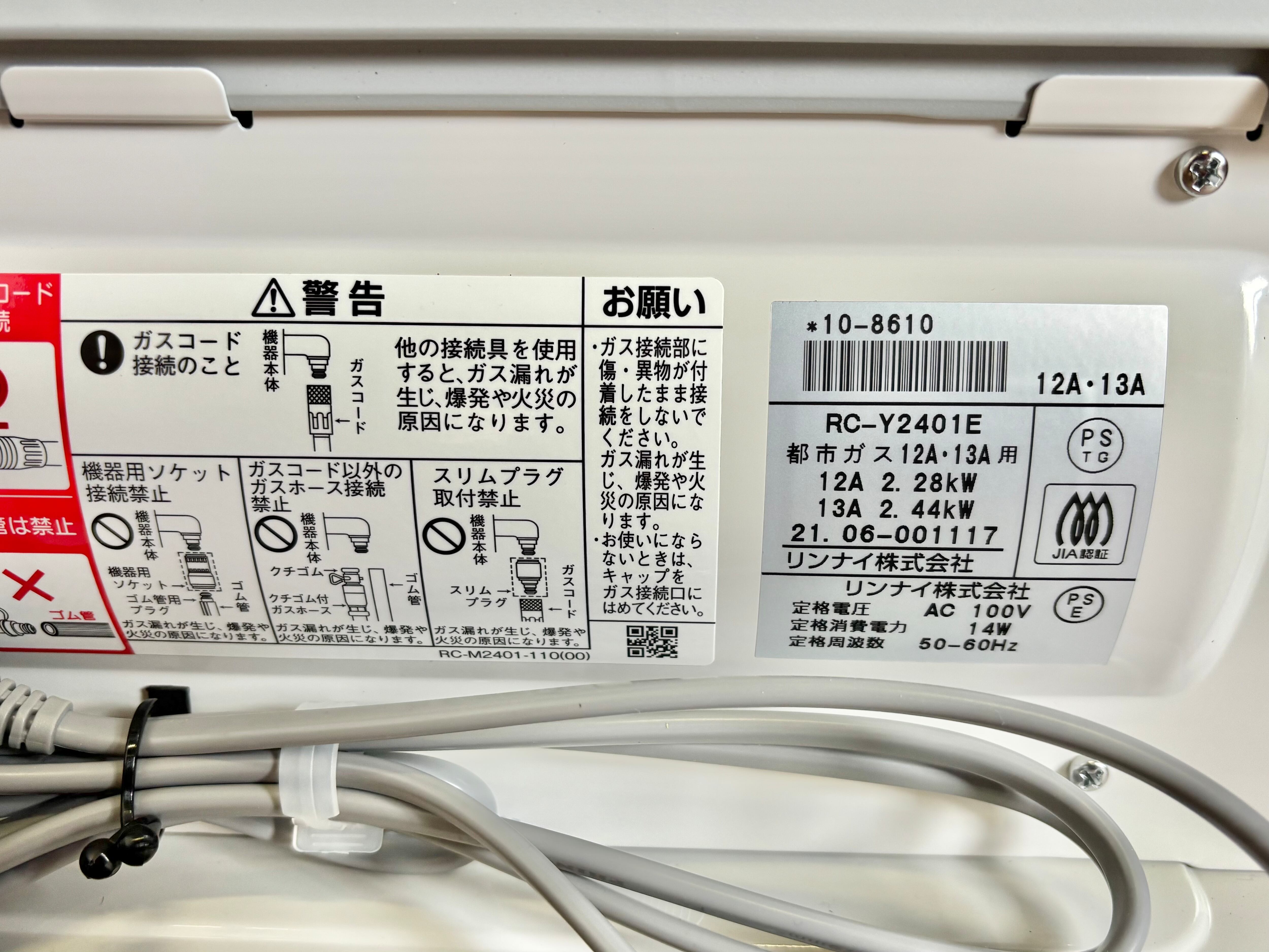 取扱説明書、ガスコード、元箱付き
