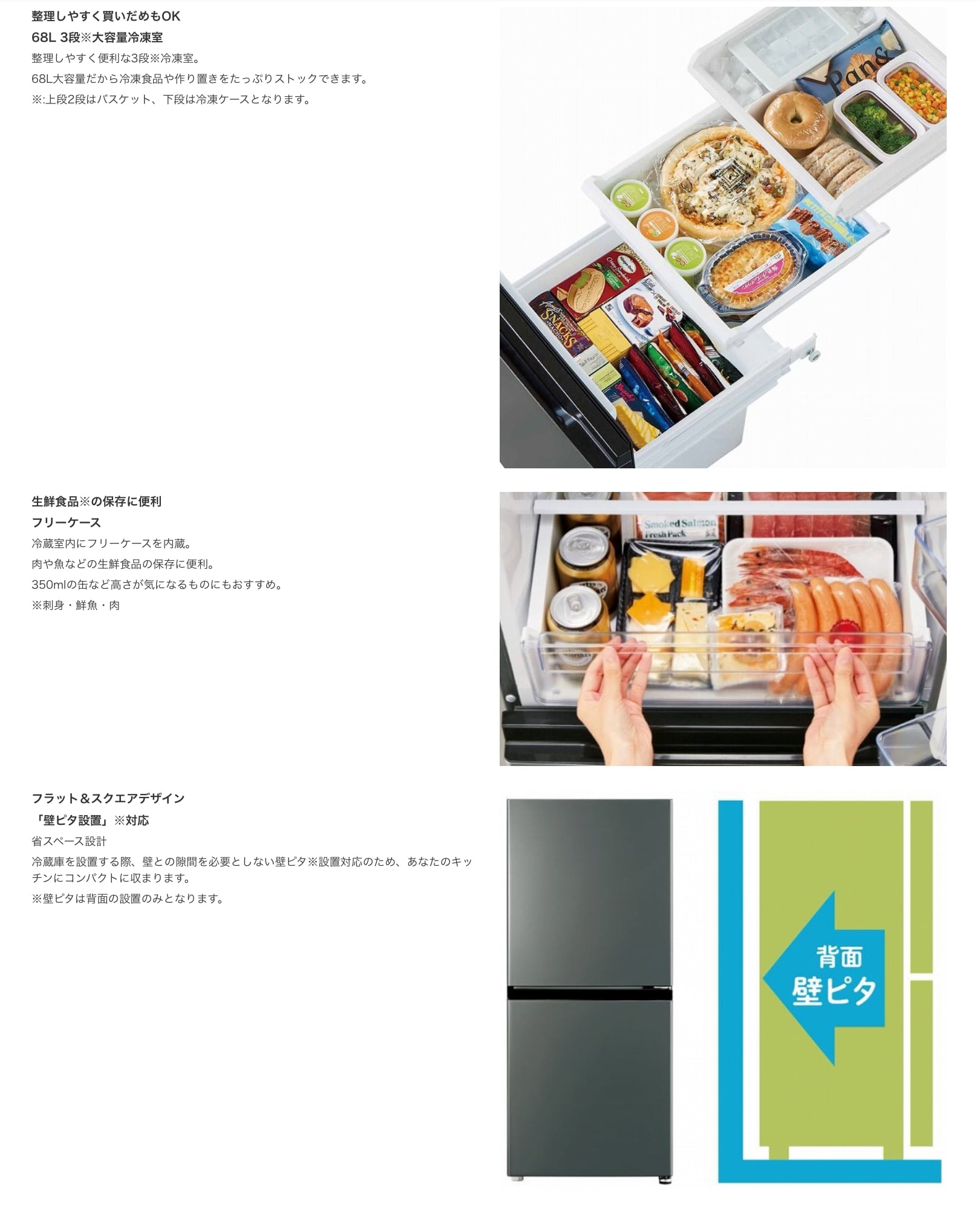 引き出しタイプで冷凍食品をたっぷりストック「3段 68Lフリーザー」搭載。