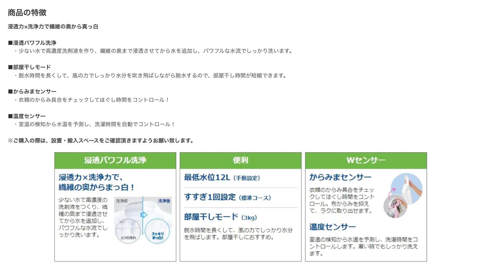 室温の検知から水温を予測し、洗濯時間を自動でコントロール◎