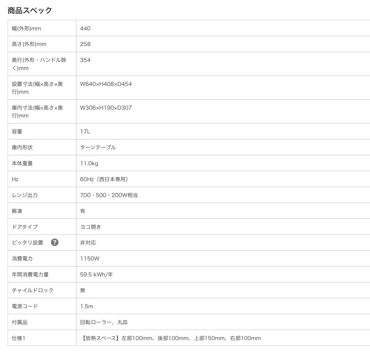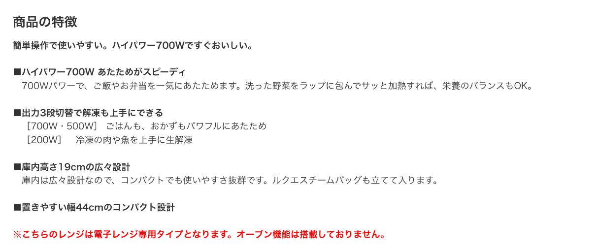 シンプル操作の電子レンジです。