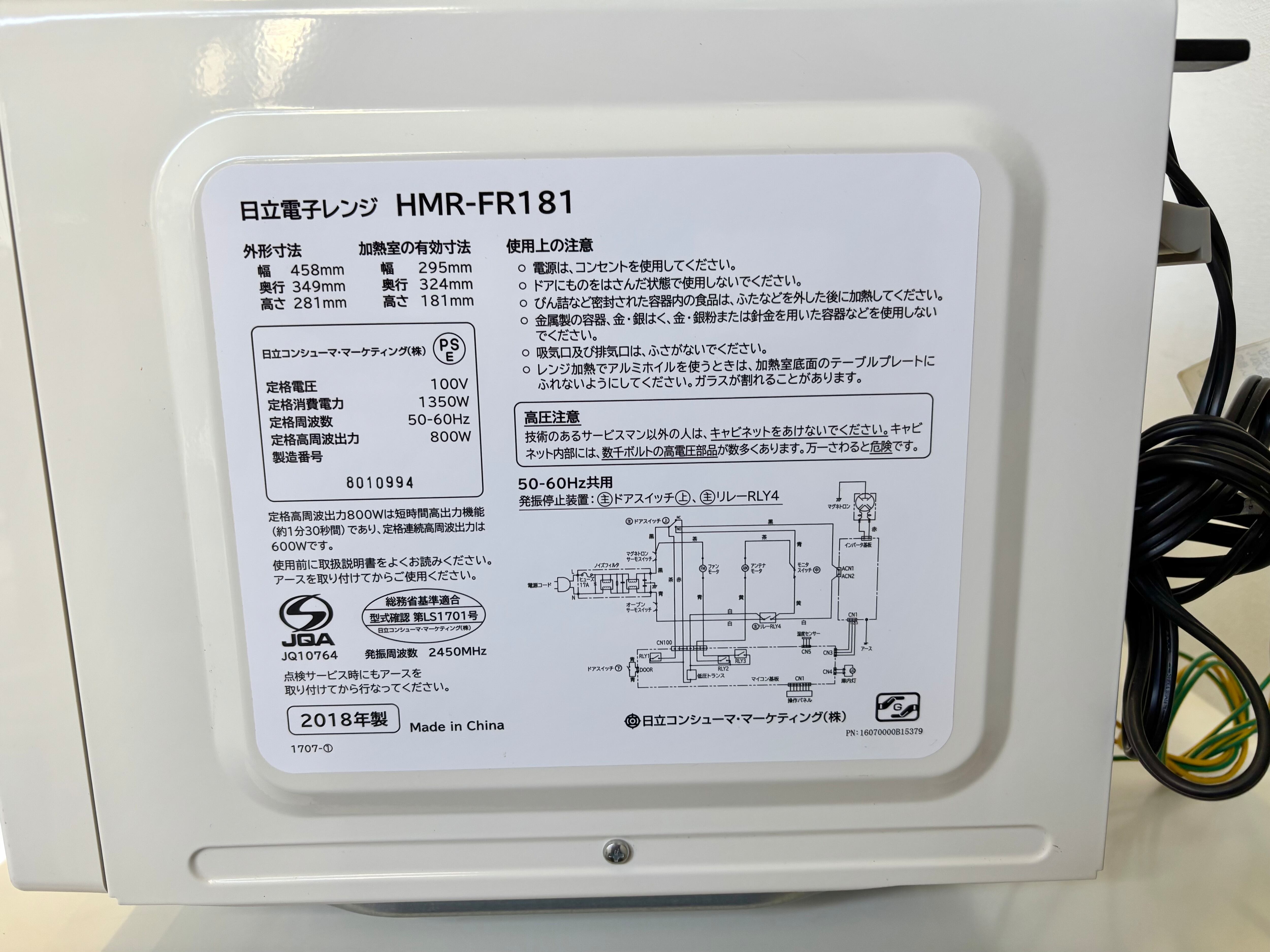 HITACHI フラット電子レンジ 2018年製
