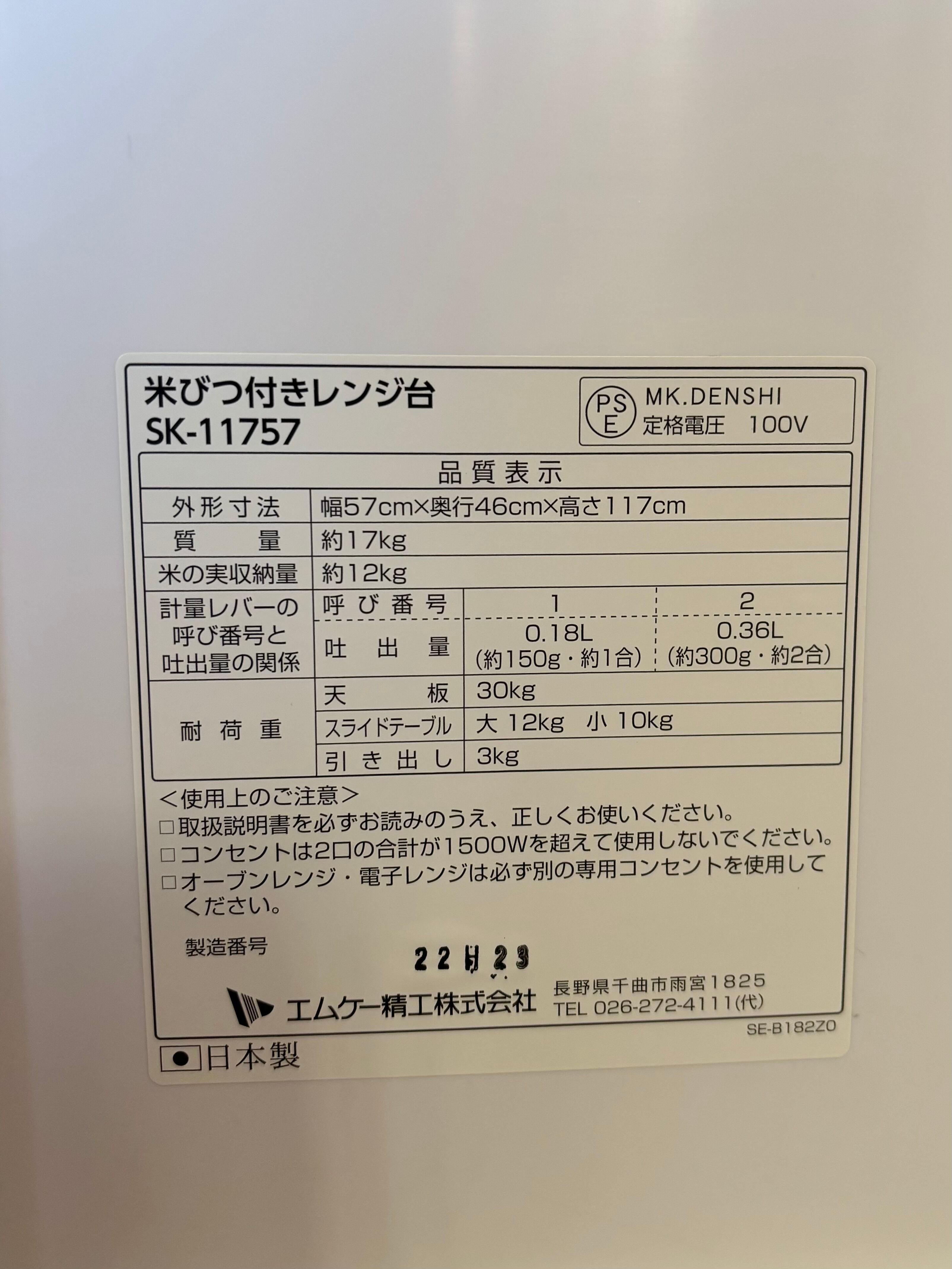 エムケー精工のレンジ台は、全て丈夫なスチール製。だから電子レンジや炊飯器、ポット、カセットコンロなどの家電製品も収納できます。