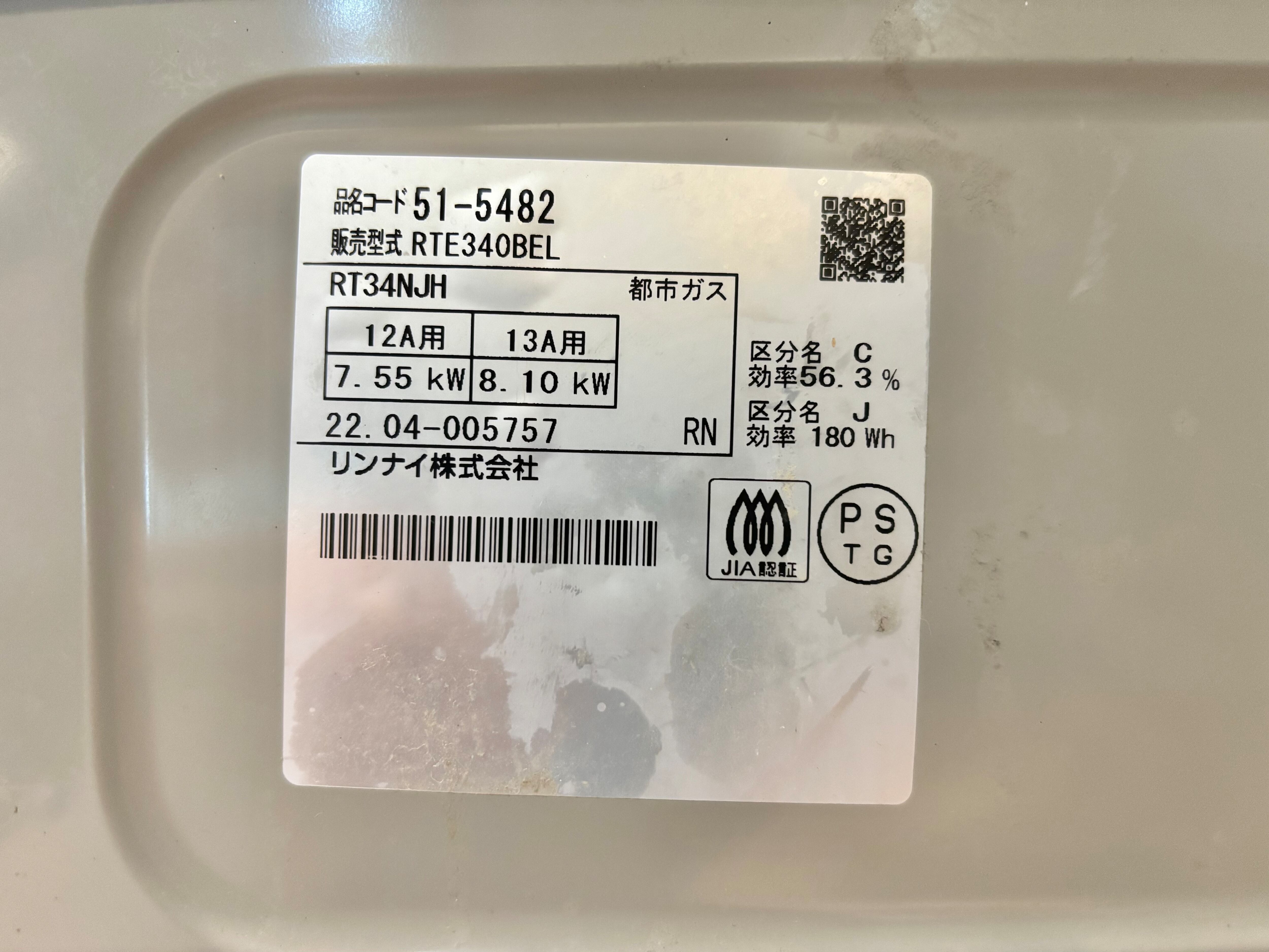 2022年製 都市ガス用 リンナイ ガステーブル