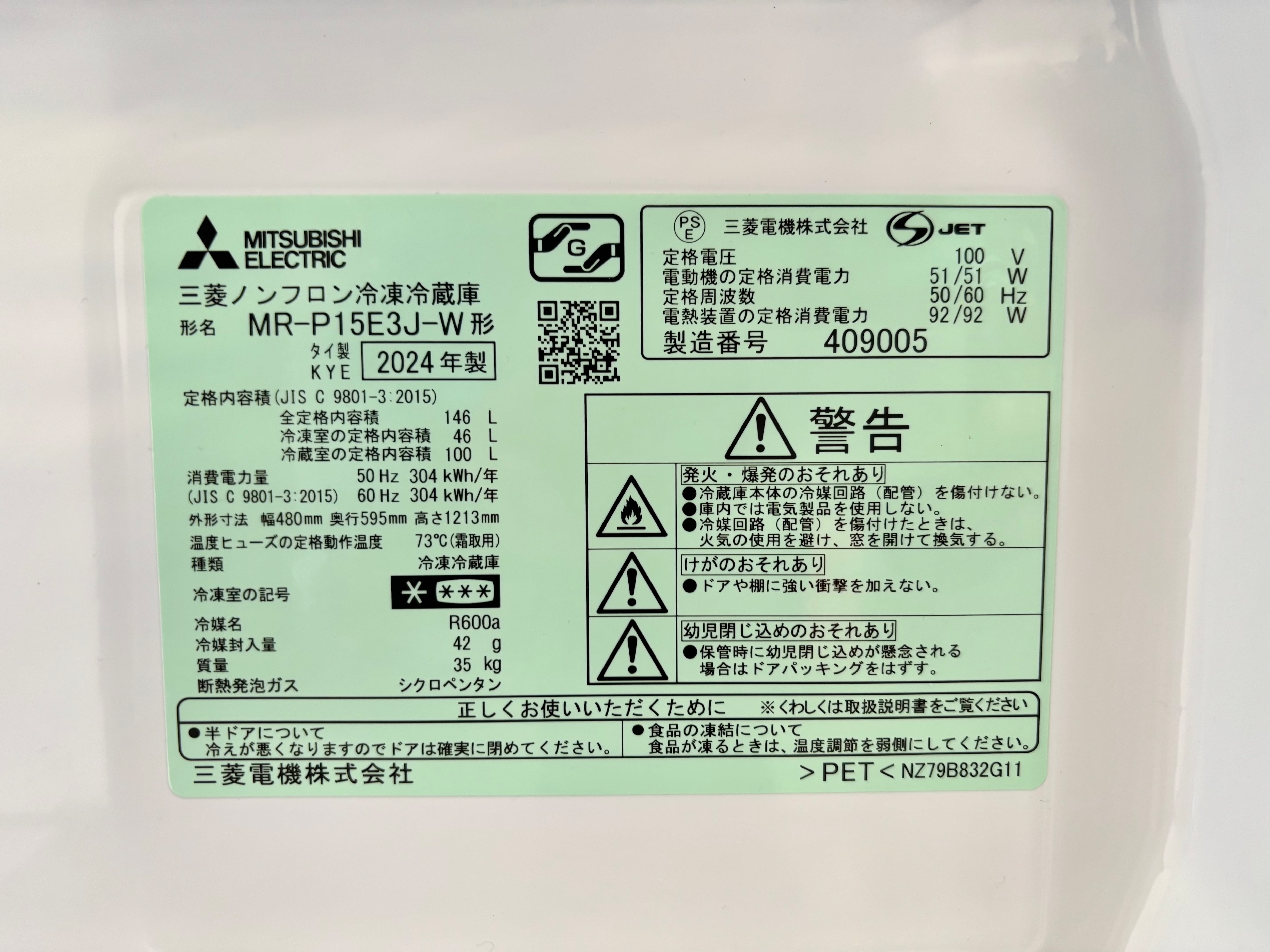 品番 MR-P15E3J-W