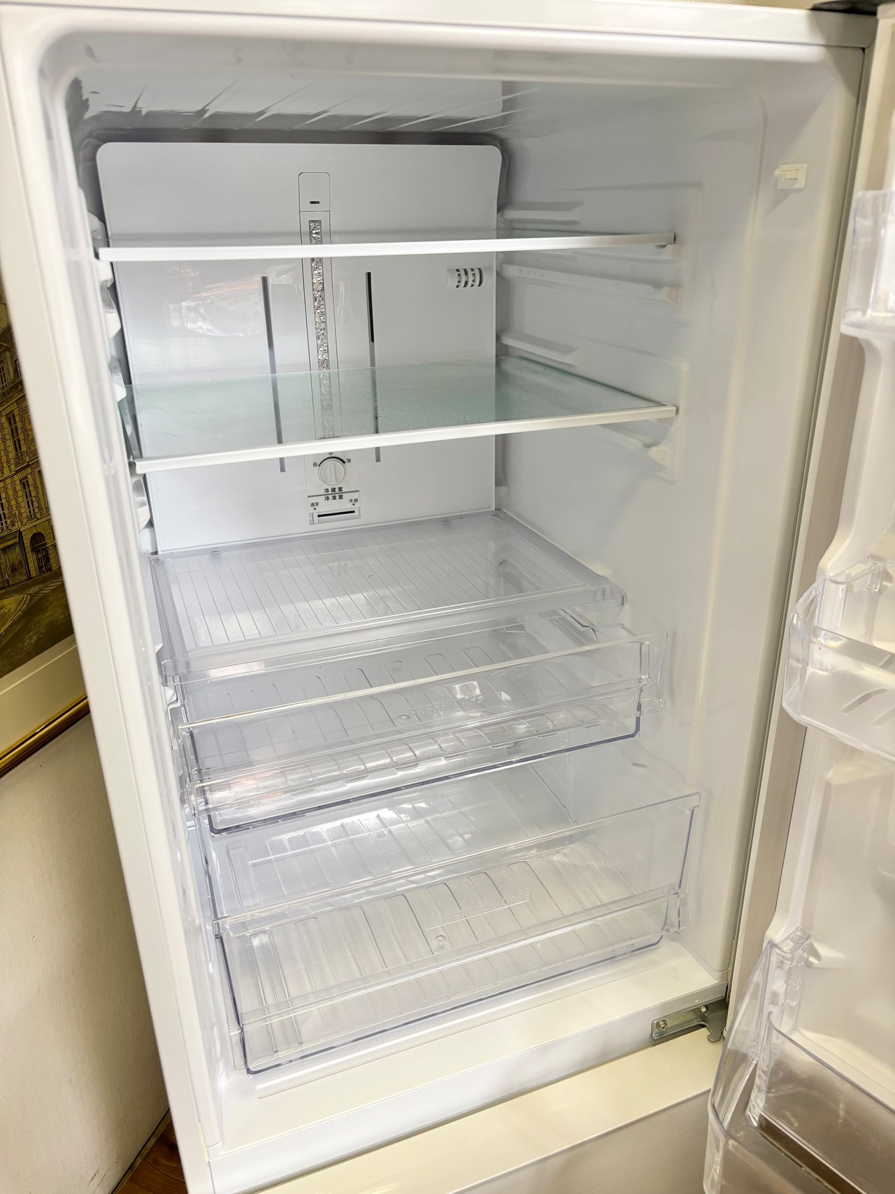 大容量ボトムフリーザーで、まとめ買いも安心の冷蔵庫です。