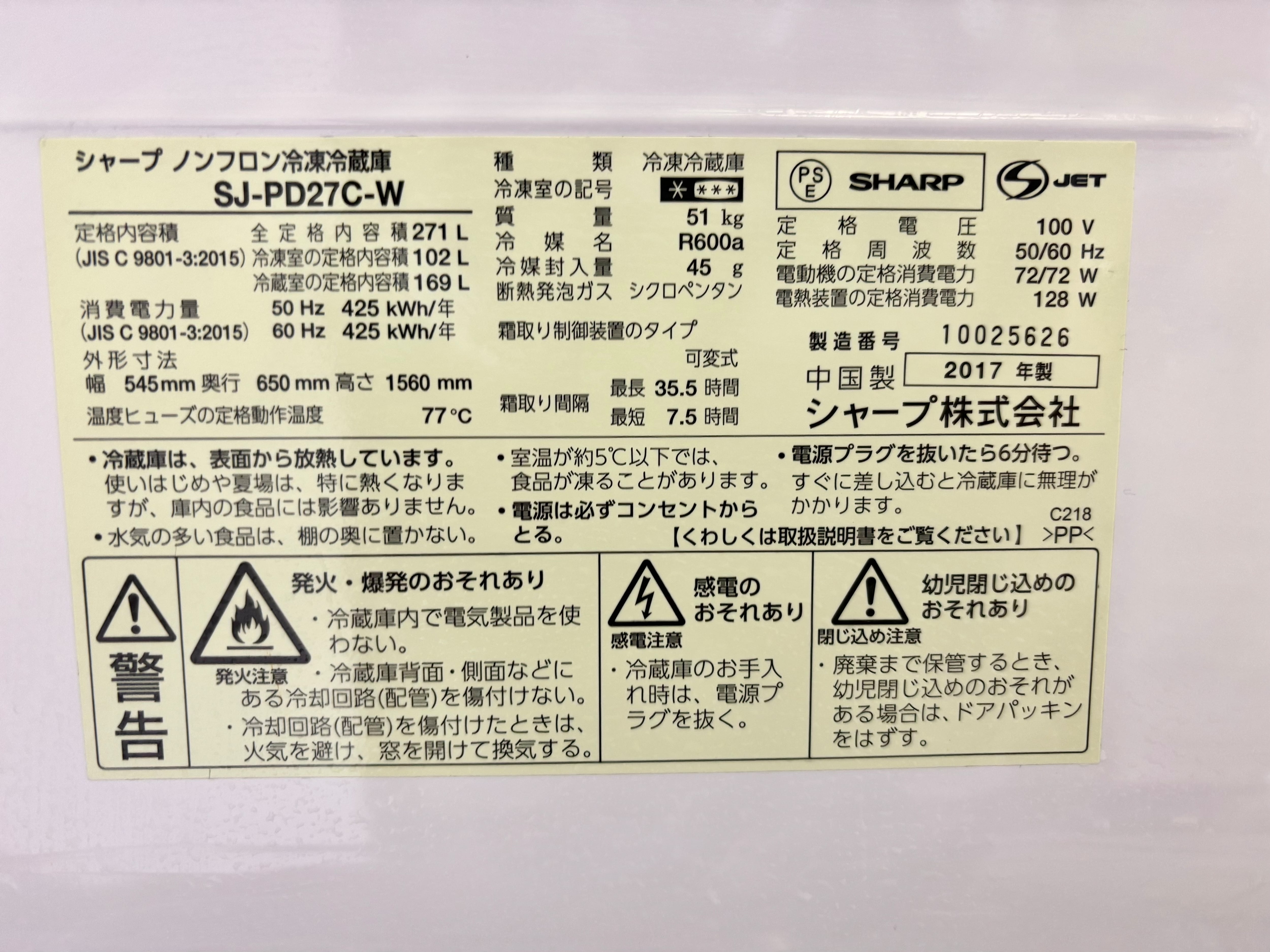 品番 SJ-PD27C-W