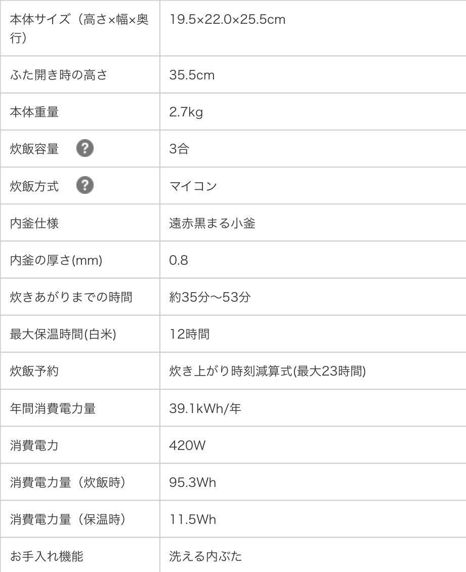 コンパクトなので置き場所を選ばず、一人暮らしにもおすすめなマイコン炊飯ジャーです。