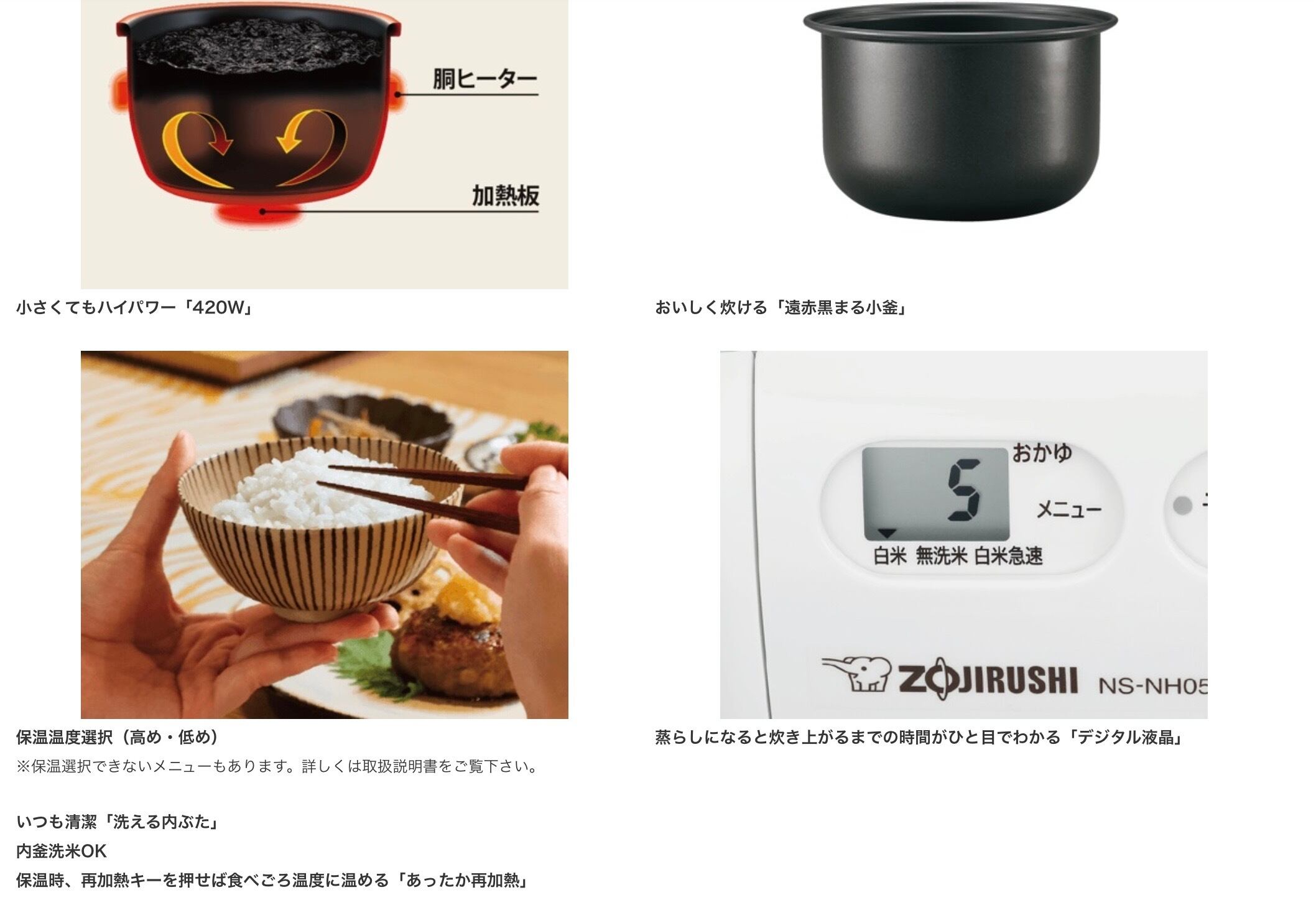 ・高火力でふっくらしたご飯が炊きあがります。