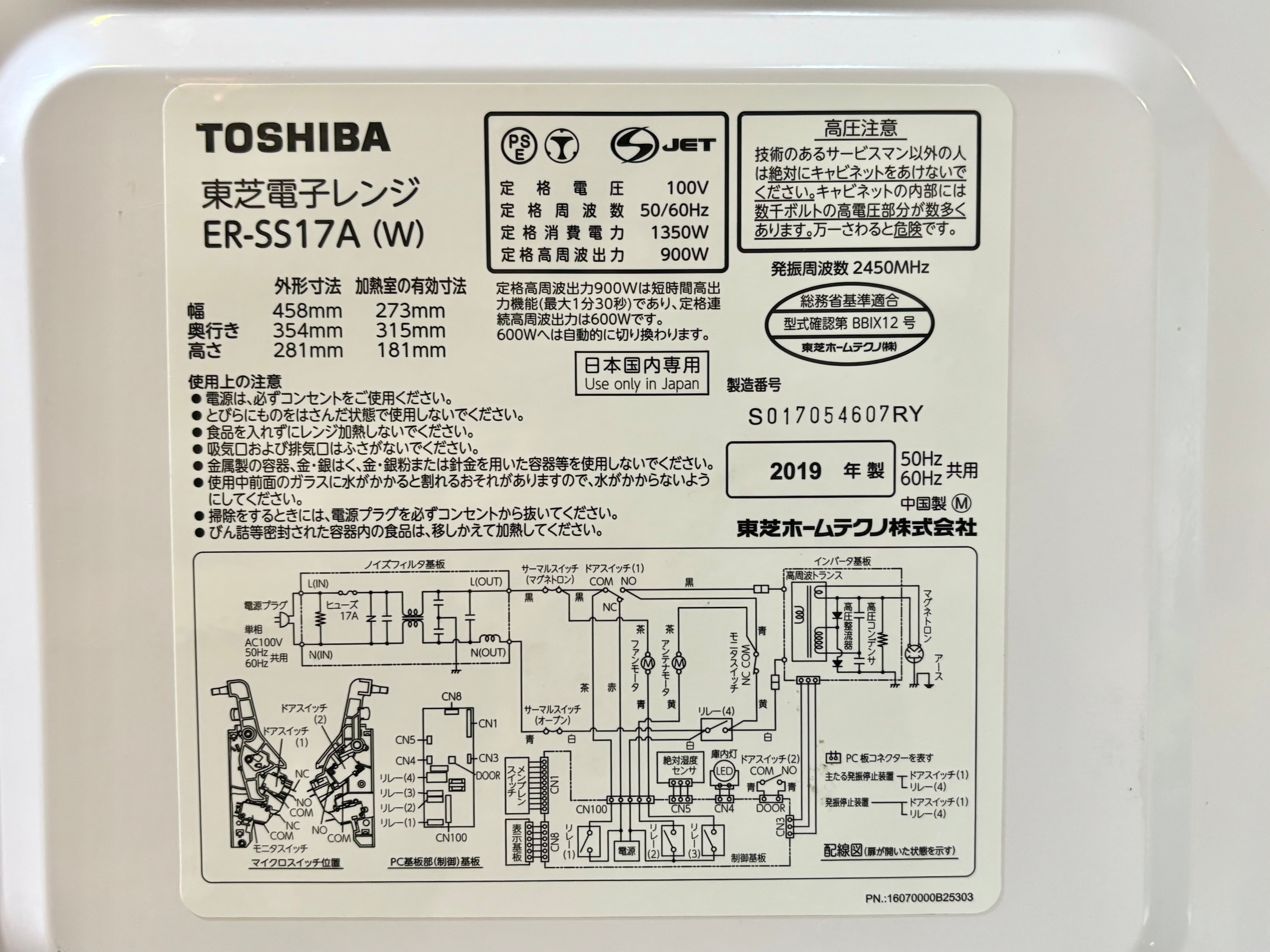 TOSHIBA フラット電子レンジ 2019年製