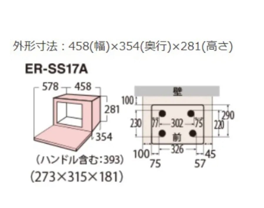 使いやすい横開き扉仕様(縦開き仕様「ER-SS17A-W」もございます。)