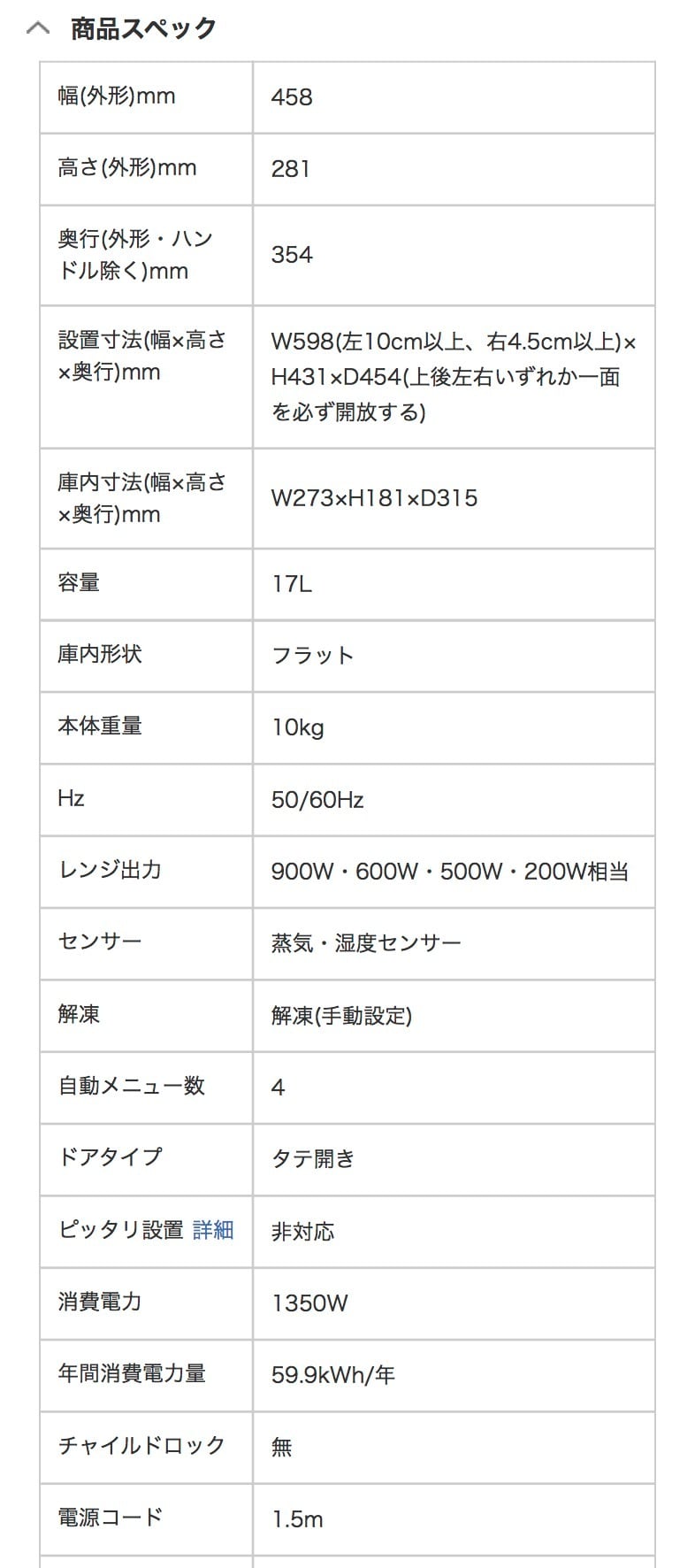 インバーター搭載だから、レンジ出力はすばやく加熱できる800W